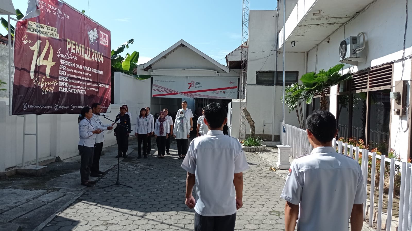 PURWODADI - Senin, 11 Desember 2023 bertempat di halaman kantor KPU Kabupaten Grobogan, kembali dilaksanakan apel pagi. Pada kesempatan ini, bertugas sebagai komandan apel adalah Kasubbag Rendatin Sekretariat KPU Kabupaten Grobogan Bapak Amin Nurhadi, S. Kom. Sementara mengambil tempat sebagai pemimpin apel adalah Kasubbag TPP dan Parhubmas Sekretariat KPU Kabupaten Grobogan Bapak Heri Prasetiyo, S. Sos.