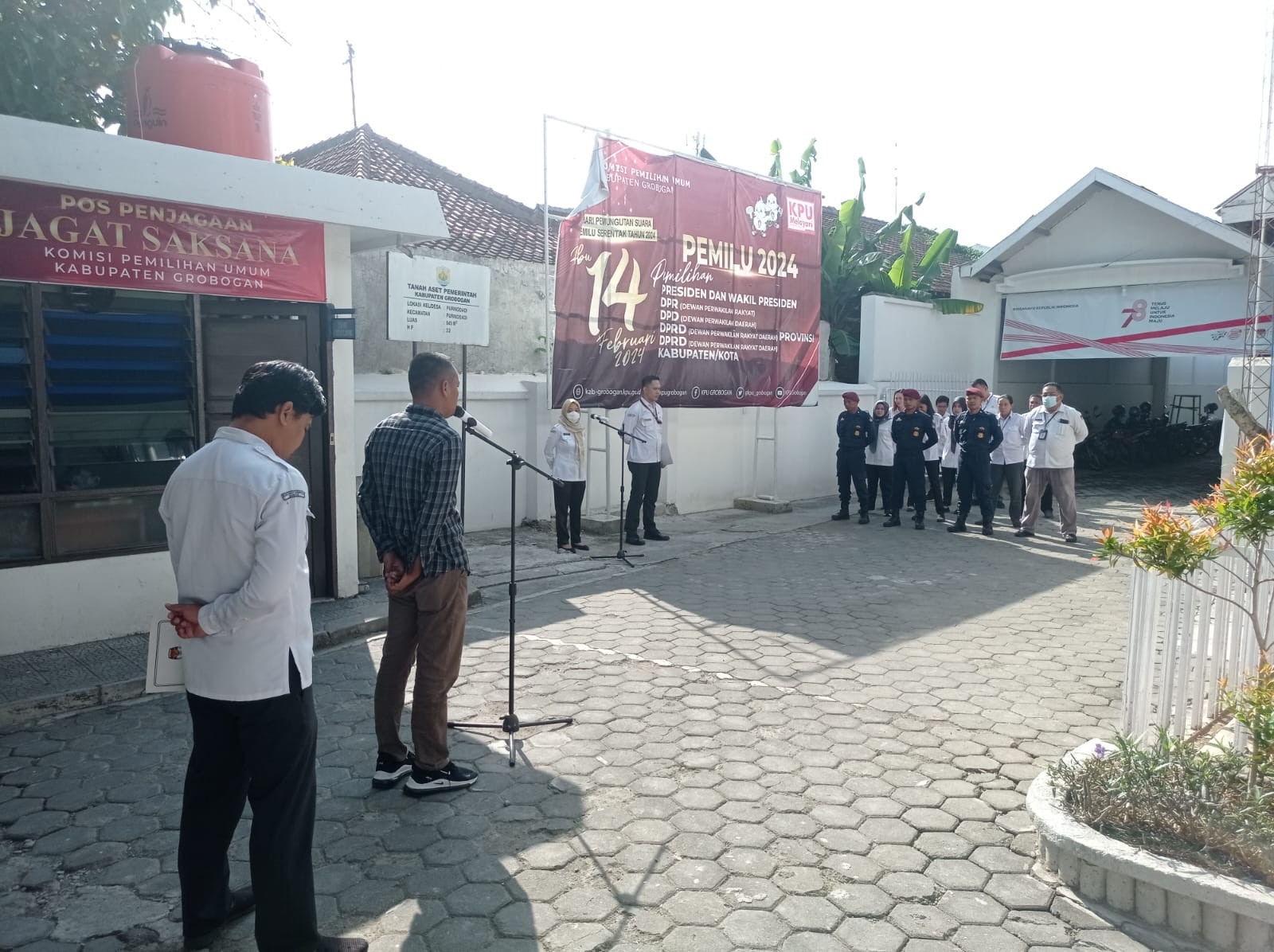 Bertugas sebagai Pembina Apel kali ini Anggota KPU Kabupaten Grobogan Divisi Teknis Penyelenggaraan Bapak Suwiknyo, S.Pd.I. Dalam amanatnya Beliau menyampaikan bahwa di tengah kegiatan yang sangat padat dan berkelindan satu sama lain, di situasi last minute seperti ini perlu kerja cepat dengan tetap berkoordinasi lintas struktur sesuai dengan job desknya masing-masing.