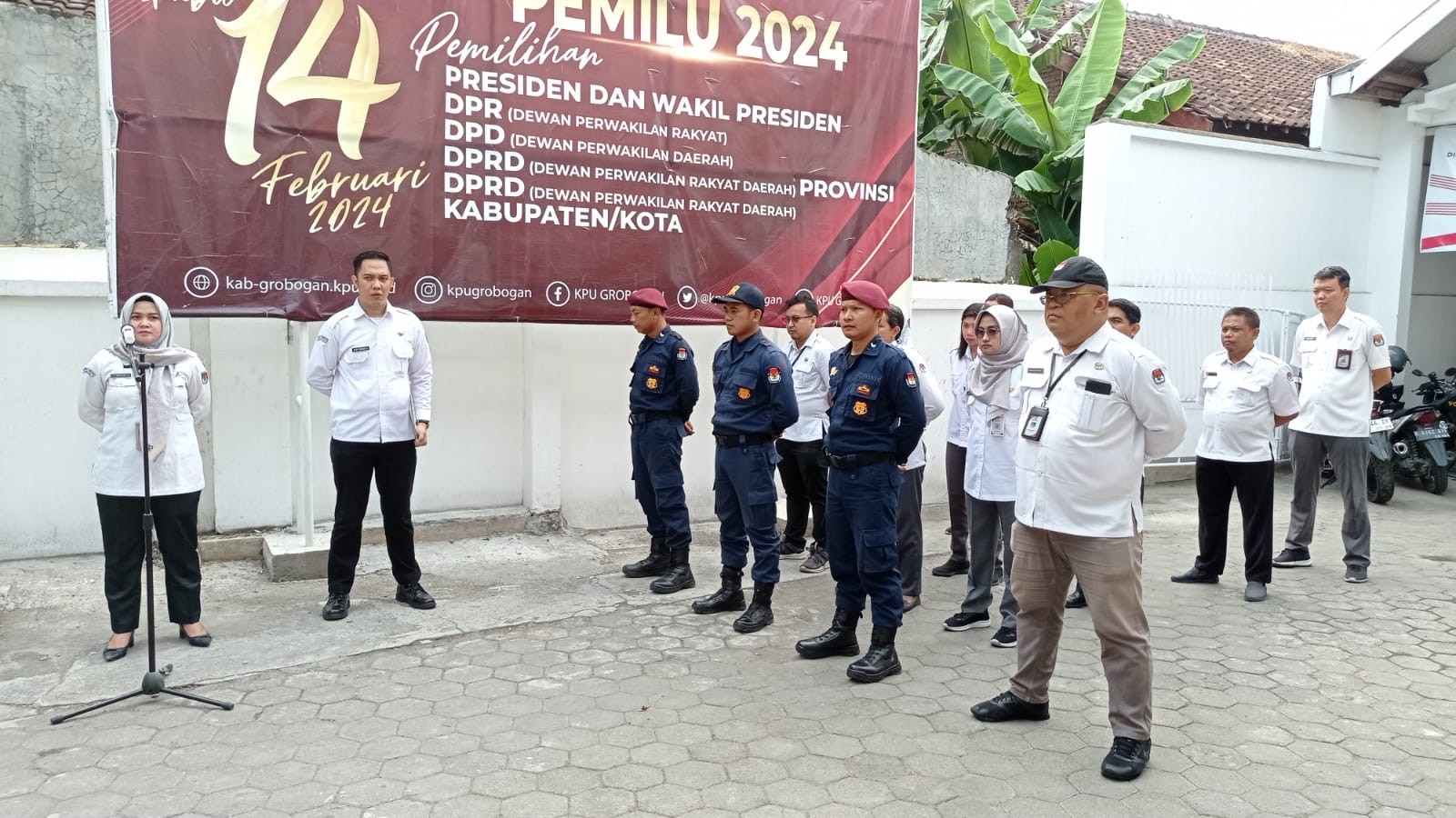 PURWODADI - Senin tanggal 23 Oktober 2023 KPU Kabupaten Grobogan menggelar apel pagi, bertempat di halaman Kantor KPU Kabupaten Grobogan Jl. S. Parman No. 2 Purwodadi. Bertugas sebagai peminpin apel adalah Kasubbag Hukum dan SDM Bapak Rama Eka Saputra, SH. Sementara Ketua KPU Kabupaten Grobogan Bapak Agung Sutopo, S.Pi mengambil tempat sebagai pembina apel.