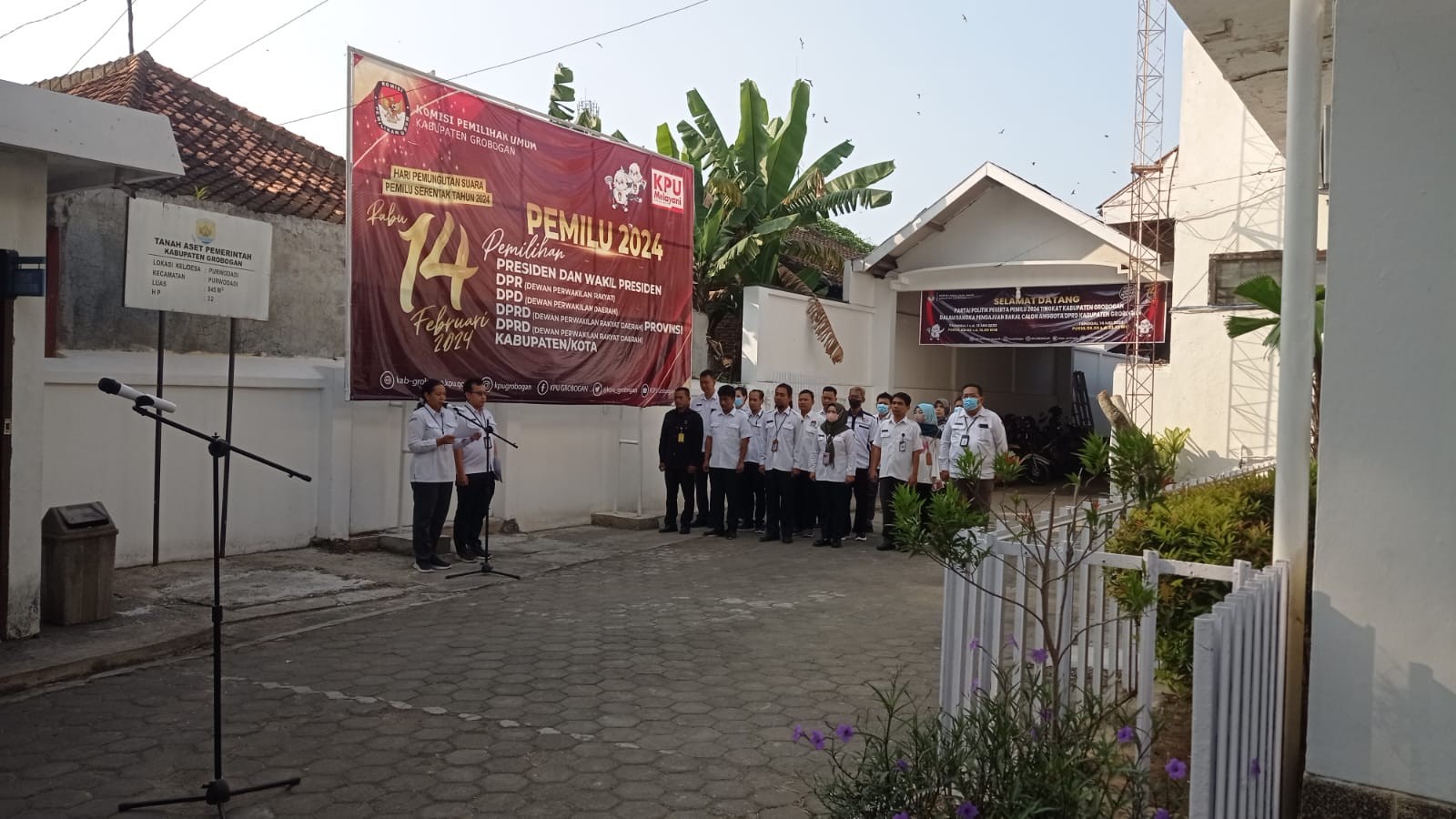 PURWODADI - Senin, 5 Juni 2023, tepat pukul 08.00 WIB, KPU Kabupaten Grobogan menggelar apel pagi, bertempat di halaman kantor KPU Kabupaten Grobogan. Bertugas sebagai komandan apel adalah Kasubbag Hukum dan SDM Bapak Rama Eka Saputra, SH. Mengambil tempat sebagai pembina apel adalah anggota KPU Kabupaten Grobogan Divisi teknis Penyelenggaraan Bapak Suwiknyo, S. Pd. I.
