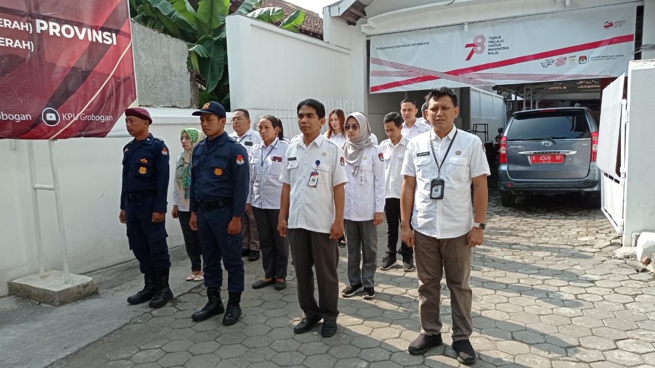 PURWODADI - Hari ini, Senin 6 November 2023 KPU Kabupaten Grobogan menggelar apel pagi tepat pukul 08.00 WIB bertempat di halaman kantor KPU Kabupaten Grobogan Jl. Letjend. S. Parman No. 2 Purwodadi. Bertugas sebagai pemimpin apel adalah Kasubbag Perencanaan, Data dan Informasi Bapak Amin Nurhadi, S. Kom. Sementara Sekretaris KPU Kabupaten Grobogan Bapak Qurniawan Adi Utomo, SH mengambil tempat sebagai pembina apel.