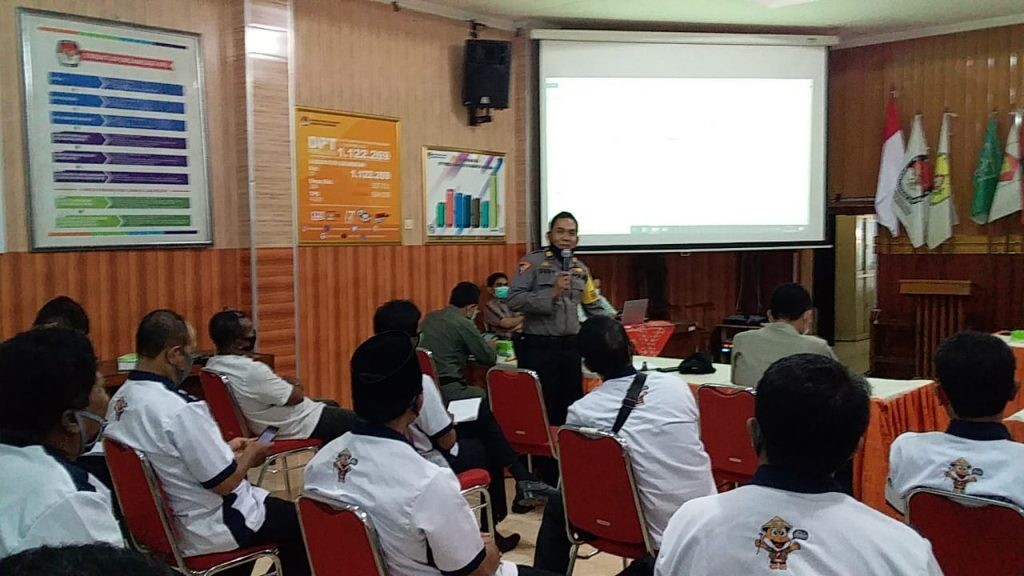 Kasubbag Dal Ops AKP Dedy Setyanto saat memberikan arahan kepada para PPK se Kabupaten Grobogan dalam rapat koordinasi tersebut.