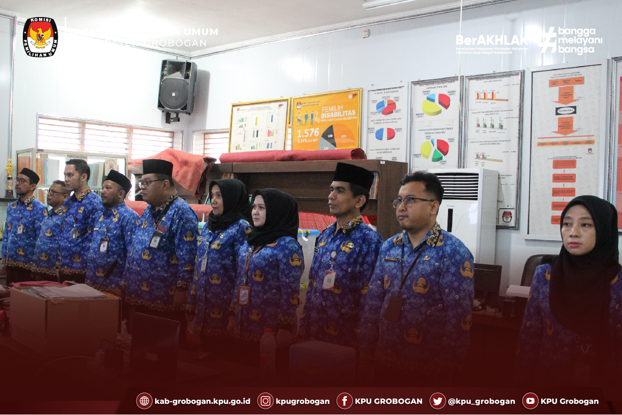 Kegiatan yang bertempat di Aula Kantor KPU Kabupaten Grobogan ini diikuti oleh Sekretaris, Kasubbag dan Staf ASN di lingkungan Sekretariat KPU Kabupaten Grobogan.