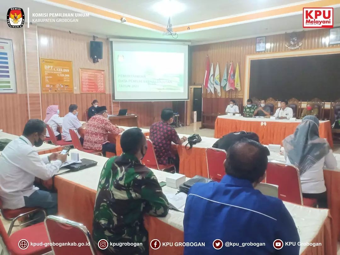 Purwodadi - KPU Kabupaten Grobogan melakukan Pemutakhiran Daftar Pemilih Berkelanjutan (PDPB). Setiap bulan KPU Kabupaten Grobogan melakukan layanan data pemilih, menerima laporan dari masyarakat terkait pemilih baru dan pemilih tidak memenuhi syarat (TMS), koordinasi dengan para pihak terkait, pencermatan data yang tersedia, serta melakukan rekapitulasi PDPB.