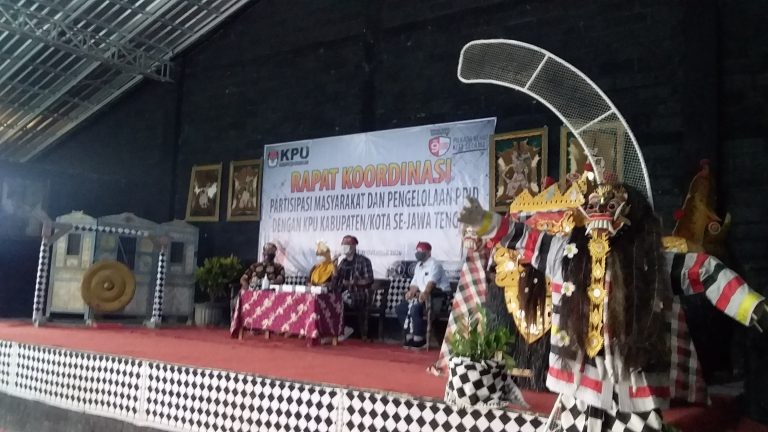 GROBOGAN – Komisi Pemilihan Umum (KPU) Provinsi Jawa Tengah menggelar rapat koordinasi partisipasi masyarakat dan pengelolaan PPID selama dua hari, Senin – Selasa (9-10/11/2020). Rapat tersebut diikuti oleh seluruh perwakilan KPU di 35 kabupaten/kota se Jawa Tengah.