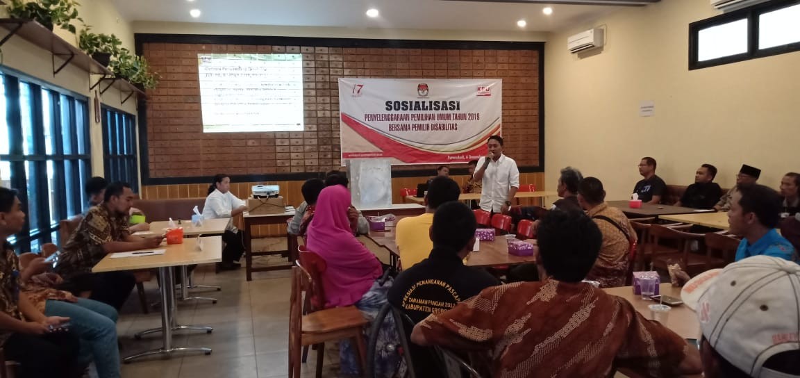 Bertempat di Aula RM. Noroyono, KPU Kab. Grobogan menggelar Sosialisasi Penyelenggaraan Pemilu 2019 bersama Pemilih Penyandang Disabilitas, pada Kamis, 6 Desember 2018. Sosialisasi kali ini bertujuan untuk meningkatkan hak pilih di kalangan pemilih penyandang disabilitas, juga untuk memberikan informasi kepemiluan yang berkaitan dengan segmen pemilih penyandang disabilitas.