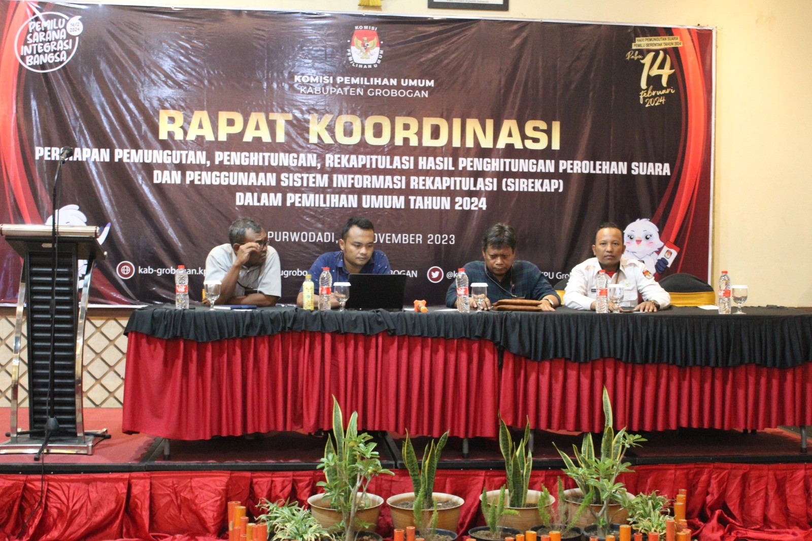 Kegiatan yang bertempat di Hotel 21 Purwodadi ini diikuti oleh Anggota Panitia Pemilihan Kecamatan (PPK) Koordinator Tahapan Pemutakhiran dan Data, Koordinator Tahapan Sosialisasi dan Staf Sekretariat PPK se-Kabupaten Grobogan. Bertindak sebagai moderator dalam kegiatan ini Kasubbag Perencanaan, Data dan Informasi Bapak Moh. Amin Nurhadi, S.Kom.
