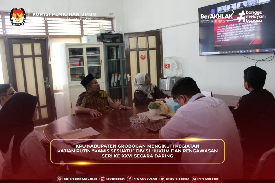 Hai #TemanPemilih, bertempat di lantai 2 Kantor KPU Kabupaten Grobogan, KPU Kabupaten Grobogan mengikuti kegiatan Kajian Rutin “Kamis Sesuatu” Divisi Hukum dan Pengawasan Seri ke-XXVI, Rabu (5/11/2025) . Kajian yang dilaksanakan secara daring oleh KPU Provinsi Jawa Tengah ini diikuti oleh KPU Kabupaten/Kota se-Jawa Tengah dengan mengangkat tema Putusan Mahkamah Konstitusi Nomor 81/PHPU.BUP-XXIII/2025 tentang Perselisihan Hasil Pemilihan Bupati dan Wakil Bupati Kabupaten Berau Tahun 2024. Kegiatan dibuka oleh Kadiv Data dan Informasi KPU Provinsi Jawa Tengah, Paulus Widiyantoro, yang menegaskan pentingnya kegiatan kajian hukum sebagai sarana pembelajaran bagi penyelenggara pemilu di seluruh daerah. “Pengalaman dari daerah lain seperti Kabupaten Berau menjadi pembelajaran berharga bagi kita semua agar siap menghadapi potensi sengketa serupa di Pilkada mendatang,” ujarnya. Hadir sebagai narasumber yaitu Ramon Dearnov Saragih, Kadiv Hukum dan Pengawasan KPU Provinsi Kalimantan Timur, Budi Haryanto, Kadiv Hukum dan Pengawasan KPU Kabupaten Berau, serta M. Yusuf Hasyim Kadiv Hukum dan Pengawasan KPU Kabupaten Temanggung. Dalam paparannya, Budi Haryanto menjelaskan bahwa sengketa Pilkada Berau 2024 berawal dari selisih perolehan suara antara dua pasangan calon, yaitu Madri Pani, S.E.–Ir. H. Agus Wahyudi, M.M. (64.894 suara) dan Hj. Sri Juniarsih Mas, M.Pd.–H. Gamalis, S.E. (65.590 suara), dengan selisih 696 suara atau 0,53 persen. Pasangan calon nomor urut 1 mengajukan gugatan ke Mahkamah Konstitusi, menuding adanya pelanggaran selama tahapan pemilihan seperti mutasi pejabat, dugaan pemilih tidak sah, dan pembukaan kotak suara yang tidak sesuai prosedur. Namun dalam proses persidangan, KPU Kabupaten Berau berhasil membuktikan bahwa seluruh tahapan telah berjalan sesuai ketentuan dan tidak ada pelanggaran yang bersifat terstruktur, sistematis, dan masif (TSM). Mahkamah Konstitusi kemudian menolak seluruh permohonan pemohon dan menguatkan hasil penetapan KPU Kabupaten Berau yang memenangkan pasangan Hj. Sri Juniarsih Mas, M.Pd.–H. Gamalis, S.E. Sementara itu, M. Yusuf Hasyim dari KPU Kabupaten Temanggung memaparkan hasil kajian terhadap putusan MK tersebut. Menurutnya, putusan MK Nomor 81/PHPU.BUP-XXIII/2025 menegaskan pentingnya kekuatan bukti dalam setiap permohonan sengketa hasil pemilihan. “Dalil tanpa bukti konkret tidak cukup kuat untuk membatalkan hasil pemilihan serta pentingnya bekerja transparan, profesional, dan berbasis data,” tegasnya. Turut memberikan kajian hukum atas Putusan Mahkamah Konstitusi Nomor 81/PHPU.BUP-XXIII/2025 tentang Perselisihan Hasil Pemilihan Bupati dan Wakil Bupati Kabupaten Berau Tahun 2024, Muslim Aisha, Kadiv Hukum dan Pengawasan KPU Provinsi Jawa Tengah. Kegiatan berlangsung interaktif dengan partisipasi aktif dari peserta, dengan penegasan bahwa pemahaman terhadap proses hukum hasil pemilihan merupakan bagian penting dari upaya menjaga integritas penyelenggaraan pemilu di Indonesia.