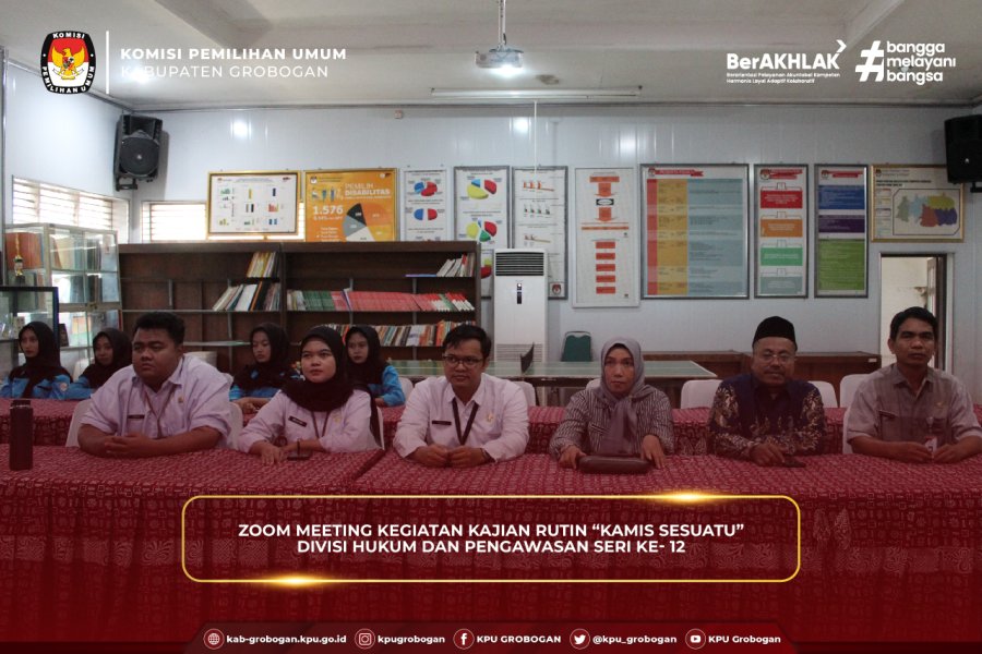 #TemanPemilih, bertempat di Aula, Komisi Pemilihan Umum (KPU) Kabupaten Grobogan hadir dalam Kegiatan Kajian Rutin "Kamis Sesuatu" Seri ke-12 yang digelar secara daring oleh KPU Provinsi Jawa Tengah, Kamis (31/7/2025). Kegiatan ini diikuti oleh seluruh KPU Kabupaten/Kota se-Jawa Tengah dan mengambil tema pembahasan Putusan Mahkamah Konstitusi (MK) Nomor 55/PHPU.BUP-XXIII/2025 mengenai perselisihan hasil Pemilihan Bupati dan Wakil Bupati Kabupaten Gorontalo Utara Tahun 2024. Acara dibuka oleh Basmar Perianto Amron, Kadiv Perencanaan dan Logistik KPU Provinsi Jawa Tengah. Dalam sambutannya, ia menekankan pentingnya forum seperti ini dalam memperkuat pemahaman hukum dan literasi kepemiluan di kalangan penyelenggara pemilu. Ia juga mengingatkan agar memperhatikan terhadap faktor eksternal yang bisa mempengaruhi integritas pemilu. Sebagai narasumber, hadir Noval Katili, Kadiv Hukum dan Pengawasan KPU Kabupaten Gorontalo Utara dan Siti Suryani, Kadiv Hukum dan Pengawasan KPU Kabupaten Jepara. Noval Katili memaparkan kronologi proses hukum yang dialami KPU Kabupaten Gorontalo Utara. Mulai dari tahapan klarifikasi syarat pencalonan, putusan Bawaslu yang menginstruksikan meloloskan calon Ridwan Yasin yang berstatus terpidana, hingga akhirnya MK memutuskan mendiskualifikasi pasangan tersebut dan memerintahkan Pemungutan Suara Ulang (PSU). Sementara itu, Siti Suryani menjabarkan pokok-pokok putusan MK secara rinci. MK menyatakan bahwa Ridwan Yasin tidak memenuhi syarat pencalonan karena masih berstatus terpidana masa percobaan saat pendaftaran. Di sisi lain, MK menolak dalil yang mempersoalkan keabsahan ijazah salah satu calon dari pasangan lainnya, dan memutuskan PSU harus dilaksanakan. Turut hadir pula Risan Pakaya, Divisi Hukum dan Pengawasan KPU Provinsi Gorontalo, yang memberikan gambaran situasi hukum di daerahnya. Ia menekankan pentingnya pemahaman menyeluruh terhadap norma-norma hukum dalam setiap tahapan pilkada guna mencegah terjadinya pelanggaran ataupun sengketa di masa mendatang. Sesi diskusi berlangsung aktif, dengan pertanyaan dan tanggapan dari peserta, terutama menyangkut teknis pelaksanaan putusan MK, mekanisme klarifikasi syarat calon, dan strategi pencegahan terhadap permasalahan serupa dan kemudian ditutup dengan arahan dan kajian hukum oleh Muslim Aisha, Kadiv Hukum dan Pengawasan KPU Provinsi Jawa Tengah.
