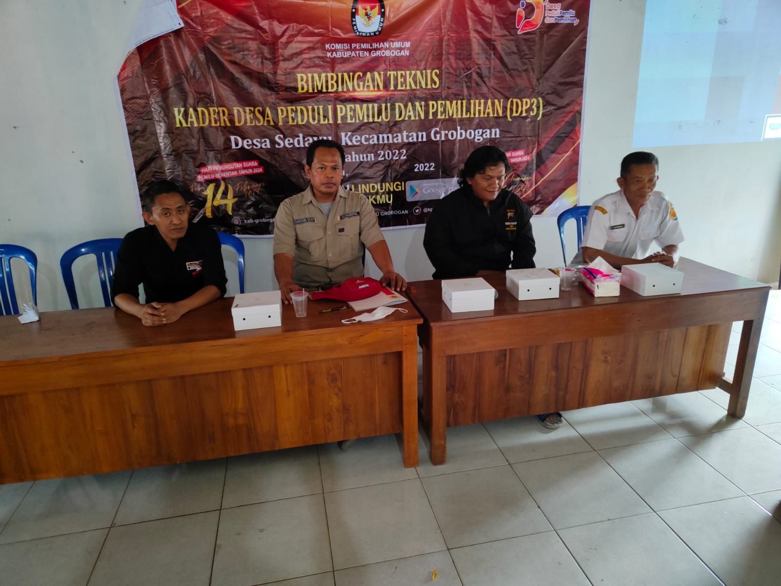 GROBOGAN - Rabu, 31 Agustus 2022, Dalam rangka meningkatkan kualitas dan kuantitas partisipasi pemilih untuk sukses penyelenggaraan Pemilu dan Pemilihan 2024 serta membangun kesadaran politik masyarakat agar menjadi pemilih yang berdaulat, Komisi Pemilihan Umum Kabupaten Grobogan menyelenggarakan Bimbingan Teknis (Bimtek) untuk Kader Desa Peduli Pemilu dan Pemilihan (DP3) di Desa Sedayu Kecamatan Grobogan. Hadir dalam Bimtek ini 25 kader Desa Peduli Pemilu dan Pemilihan (DP3) dari masing-masing basis. Pemateri pertama adalah Anggota Komisi Pemilihan Umum Kabupaten Grobogan Divisi Sosialisasi, Pendidikan Pemilih, Partisipasi Masyarakat dan SDM, Ngatiman, SE dengan materi Desa Peduli Pemilu dan Pemilihan (DP3) serta Sistem dan Tahapan Pemilu dan Pemilihan. Kemudian dilanjutkan oleh pemateri kedua yaitu dari Bakesbangpol Kabupaten Grobogan Bambang Susilo dengan materi yaitu Pendidikan Politik Dalam Pencegahan Politik Uang. Materi terakhir disampaikan oleh Ketua PWI Kabupaten Grobogan Felek Wahyu Prabowo yaitu Teknik dan Identifikasi Berita Bohong (Hoaks). Karena materi-materi yang disampaikan oleh narasumber menarik bagi Kader DP3, maka suasanapun menjadi lebih hangat. Dengan penyampaian yang sederhana, membuat Kader DP3 Desa Sedayu Kecamatan Grobogan tertarik untuk menyimak materi yang disampaikan oleh narasumber. Banyak pertanyaan yang dilontarkan oleh kader DP3 Desa Sedayu Kecamatan Grobogan, antara lain bagaimana cara menghindari politik uang. Pertanyaan-pertanyaan ini dijawab dengan apik oleh narasumber. Ngatiman berharap dengan Bimtek Kader DP3 Desa Sedayu Kecamatan Grobogan dapat meningkatkan partisipasi pemilih di Desa Sedayu khususnya, dan masyarakat Grobogan pada umumnya. Sementara Bambang berharap Bimtek Kader DP3 Desa Sedayu Kecamatan Grobogan ini mampu meminimalisir terjadinya praktek politik uang. By : MM