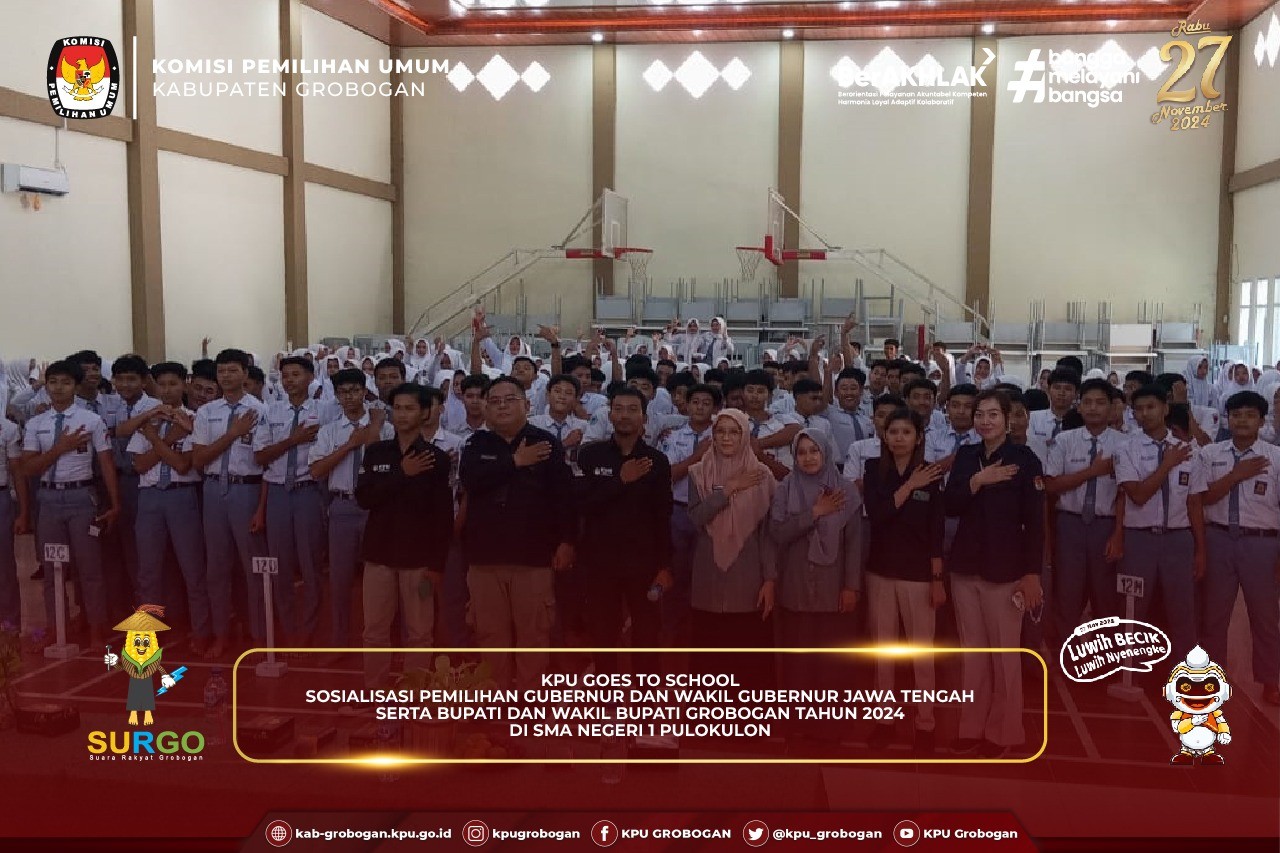 Acara diawali dengan sambutan dari Ketua KPU Kabupaten Grobogan yang diwakili oleh Anggota KPU Kabupaten Grobogan Divisi Hukum dan Pengawasan, Bapak Muh.Syaifudin, S.Pd.I, M.Pd.,