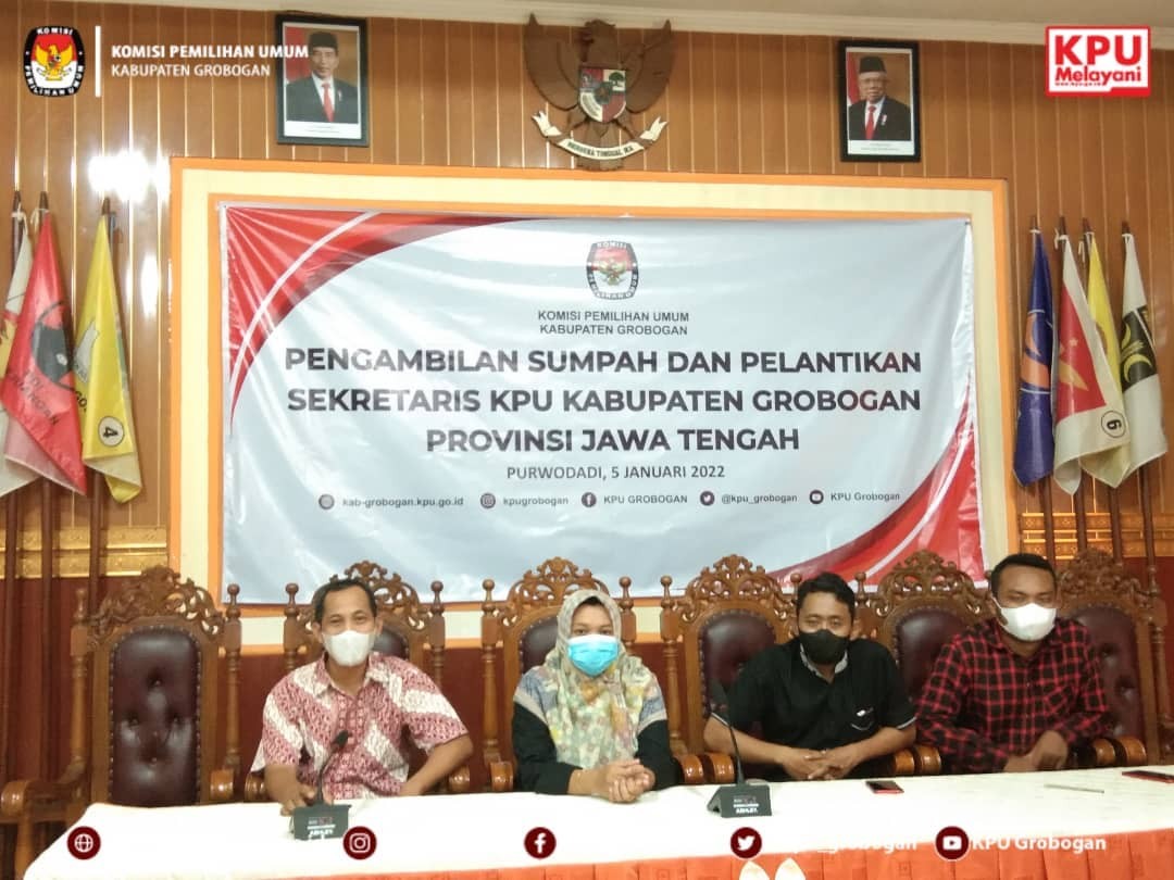 Hari ini, seperti Kamis sebelumnya, melaksanakan agenda kegiatan Sambang Sedulur Kamisan (SamSu Kamisan). Acara ini merupakan kegiatan rutin yang diselenggarakan oleh KPU Kabupaten Grobogan dalam rangka persiapan Pemilu dan Pemilihan Serentak 2024 dengan bentuk sosialisasi dan silaturahmi ke stakeholder yang berada di wilayah Kabupaten Grobogan. Target SamSu Kamisan kali ini adalah Partai Bulan Bintang. Mengambil tempat di Dusun Gebangan RT 1 RW 3 Desa Putat Kecamatan Purwodadi, acara berlangsung santai. Berkesempatan menerima kunjungan KPU Kabupaten Grobogan adalah Ketua DPC Partai Bulan Bintang Bapak Puji Daryana beserta jajaran pengurus. Sementara KPU Kabupaten Grobogan hadir dengan formasi lengkap. Beberapa hal yang disampaikan oleh KPU Kabupaten Grobogan pada kegiatan tersebut adalah informasi awal seputar Pemilu dan Pemilihan tahun 2024, seperti Pemutakhiran Data Pemilih Berkelanjutan (PDPB) dan Program Desa Peduli Pemilu Dan Pemilihan (DP3). Agung berharap bahwa kerja keras KPU Kabupaten Grobogan akan mendapat feed back yang positif dari partai politik. Harapan beliau partai politik khususnya Partai Bulan Bintang dapat menyebarluaskan infoni kepada seluruh jajaran kadernya. Diakhir acara, KPU Kabupaten Grobogan menyerahkan buku hasil karya anggota KPU Kabupaten Grobogan kepada Partai Bulan Bintang.