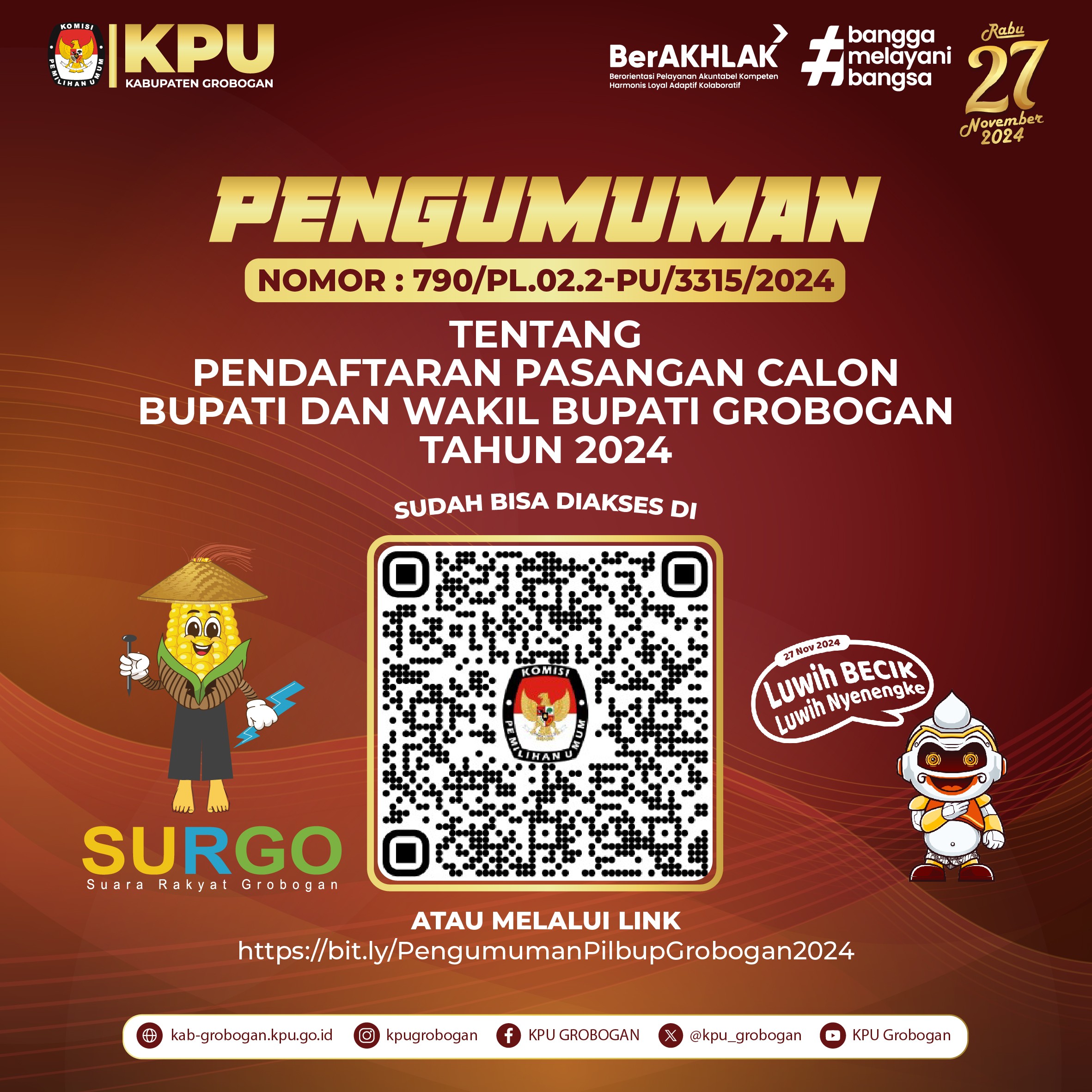 Dalam rangka pembentukan Calon Petugas Pemutakhiran Data Pemilih untuk Pemilihan Gubernur dan Wakil Gubernur, Bupati dan Wakil Bupati, dan Wali Kota dan Wakil Wali Kota Tahun 2024, Komisi Pemilihan Umum Kabupaten Grobogan melalui Panitia Pemungutan Suara mengundang Warga Negara Indonesia yang memenuhi kualifikasi untuk mendaftarkan diri menjadi Pantarlih dengan ketentuan sebagai berikut: