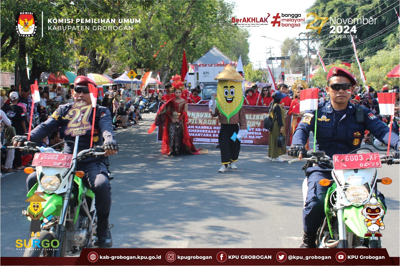 Dalam sambutannya, Bupati Grobogan, Ibu Hj. Sri Sumarni, S.H., M.M. menyampaikan ajakan untuk datang ke TPS pada Pilkada 2024, Rabu, 27 November 2024. Walaupun beda pilihan namun tetap bergandengan tangan, mari ciptakan Pilkada 2024 di Kabupaten Grobogan dengan aman, tentram dan kondusif, ucap Beliau. Di akhir sambutan Beliau mengajak seluruh warga masyarakat Grobogan untuk memilih Calon Gubernur dan Wakil Gubernur Jawa Tengah serta Calon Bupati dan Wakil Bupati Grobogan yang terbaik, untuk meneruskan membangun Kabupaten Grobogan yang tercinta ini.