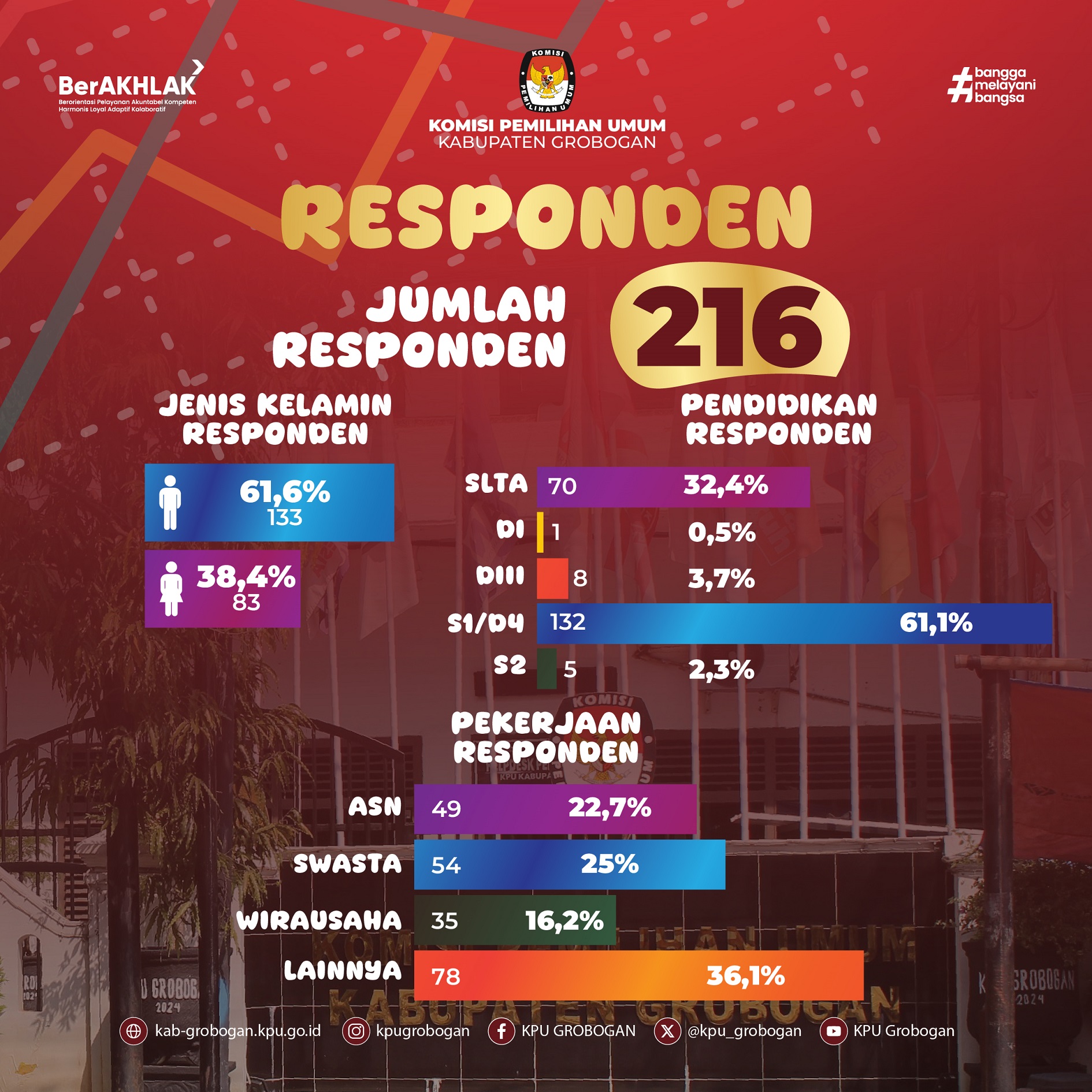 Terima kasih atas partisipasi #TemanPemilih yang telah mengisi kuesioner. Masukan dari #TemanPemilih sangat berarti sebagai bahan evaluasi dan peningkatan kualitas pelayanan publik di KPU Kabupaten Grobogan.
