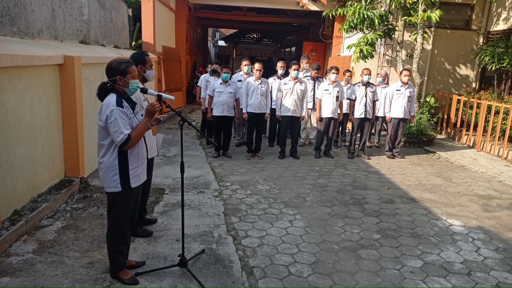 PURWODADI - Tepat pukul 08.00 WIB seluruh jajaran KPU Kabupaten Grobogan melaksanakan apel pagi bertempat di halaman kantor KPU Kabupaten Grobogan Jl. S. Parman No. 2 Purwodadi. Mengambil tempat sebagai pembina apel adalah Anggota KPU Kabupaten Grobogan Suwiknyo, S. Pd. I, sedangkan bertugas sebagai pemimpin apel adalah Kasubbag Keuangan Umum Dan Logistik Sekretariat KPU Kabupaten Grobogan Dandy Setyawan, S. IP.
