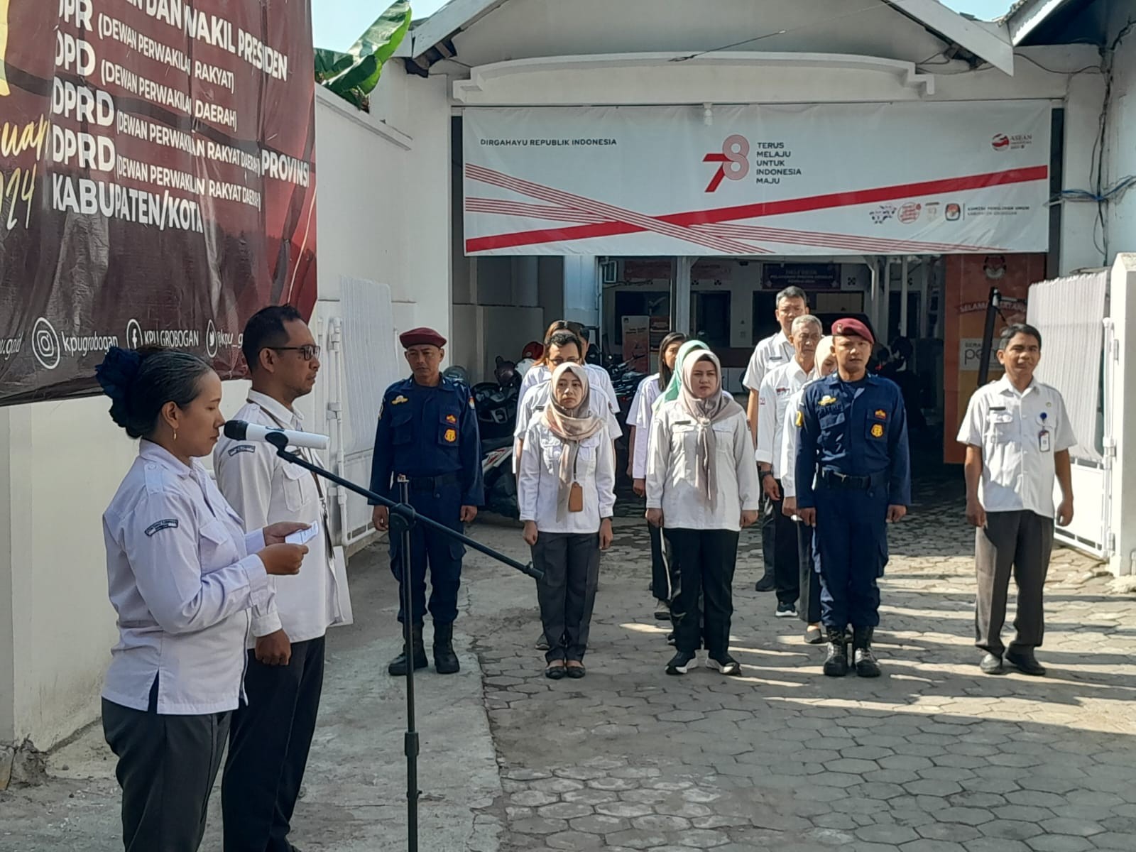 PURWODADI - KPU Kabupaten Grobogan menggelar Apel Pagi, Senin 20 November 2023 bertempat di halaman Kantor KPU Kabupaten Grobogan Jl. Letjen. S. Parman No. 2 Purwodadi. Bertugas sebagai Pemimpin Apel adalah Kasubbag Teknis Penyelenggaraan Pemilu, Partisipasi dan Hubungan Masyarakat Sekretariat KPU Kabupaten Grobogan Bapak Heri Prasetyo, S. Sos. Sendangkan Pembina Apel kali ini adalah Anggota KPU Kabupaten Grobogan Divisi Perencanaan, Data dan Informasi Bapak Agung Budi Prasetyo, A.Md.