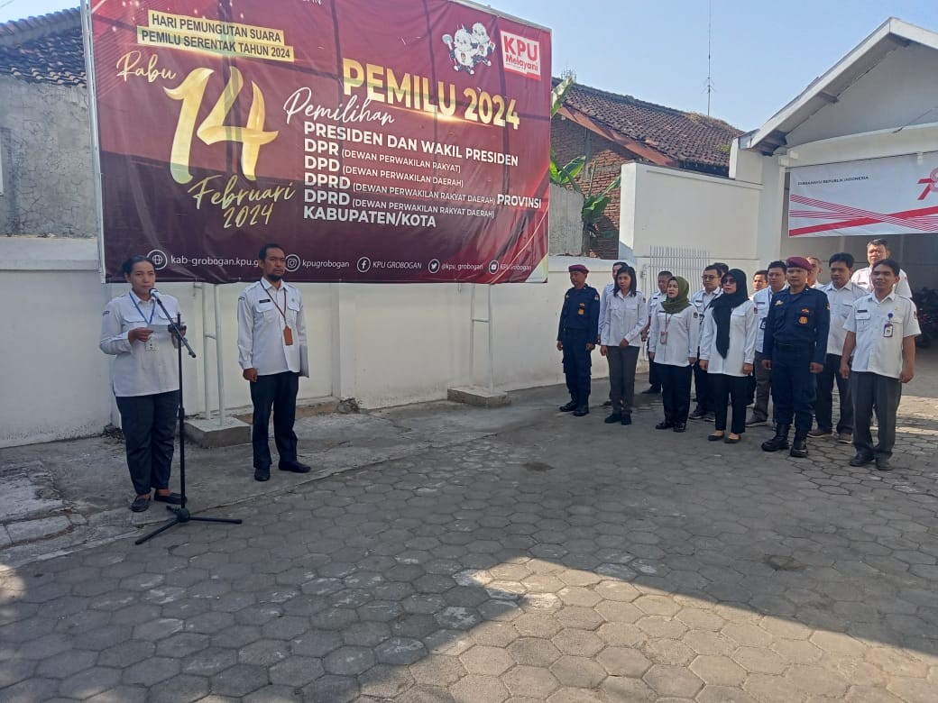 PURWODADI - Senin 21 Agustus 2023, KPU Kabupaten Grobogan menggelar apel pagi tepat pukul 08.00 WIB bertempat di halaman kantor KPU Kabupaten Grobogan, Jl. Letjend. S. Parman No. 2 Purwodadi. Bertugas sebagai pemimpin apel adalah Kasubbag Teknis Penyelenggaraan Pemilu, Partisipasi Dan Hubungan Masyarakat KPU Kabupaten Grobogan Bapak Heri Prasetiyo, S. Sos. Sementara Anggota KPU Kabupaten Grobogan Divisi Sosialisasi, Pendidikan Pemilih, Partisipasi Mayarakat Dan Sumber Daya Manusia Bapak Ngatiman, S.E. mengambil tempat sebagai pembina apel.