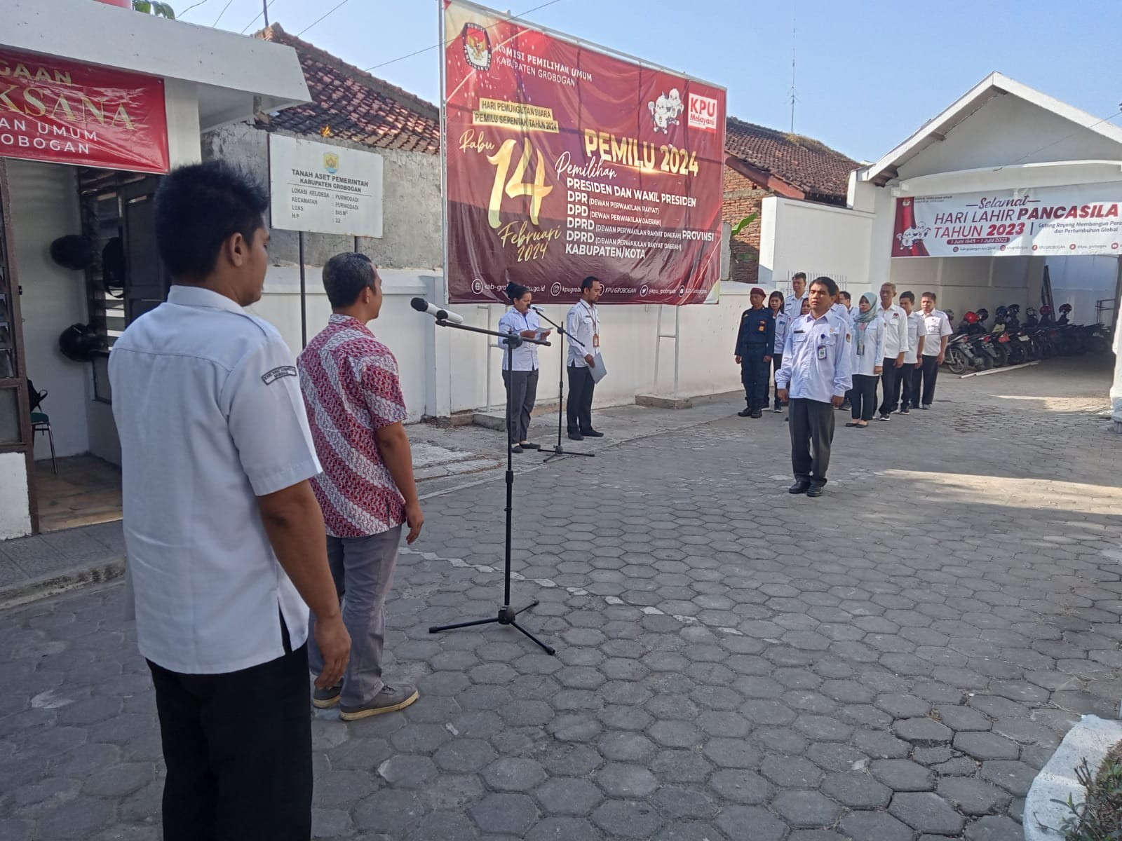 PURWODADI - Senin, 31 Juli 2023 KPU Kabupaten Grobogan kembali melaksanakan Apel Pagi, bertempat di halaman kantor KPU Kabupaten Grobogan. Bertugas sebagai pemimpin apel adalah Kasubbag Teknis Penyelenggaraan Pemilu, Partisipasi dan Hubungan Masyarakat KPU Kabupaten Grobogan Bapak Heri Prasetyo, S. Sos. Sedangkan Anggota KPU Kabupaten Grobogan Divisi Perencanaan, Data dan Informasi Bapak Muhammad Machruz, ST mengambil tempat sebagai pembina apel.