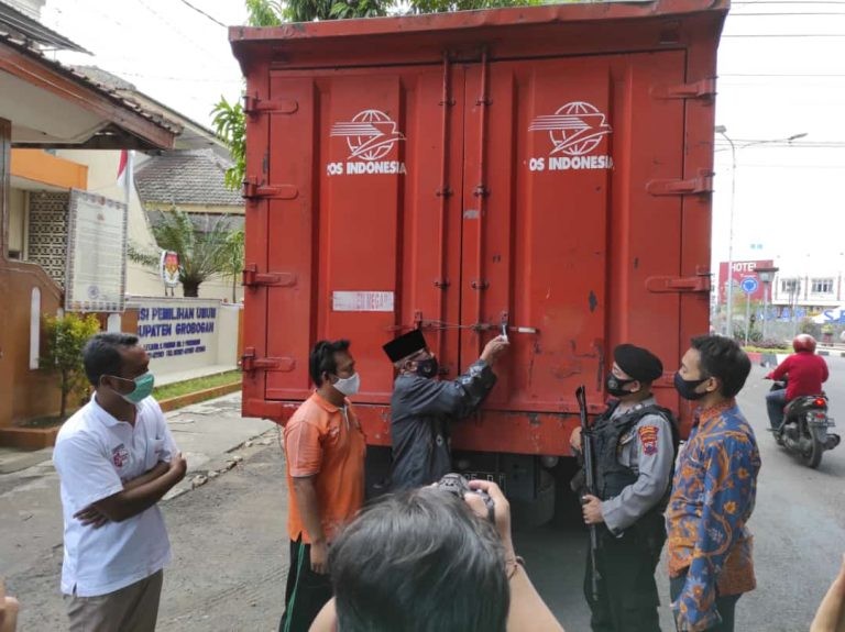 Saat menerima kedatangan logistik surat suara untuk Pilbup Grobogan 2020.