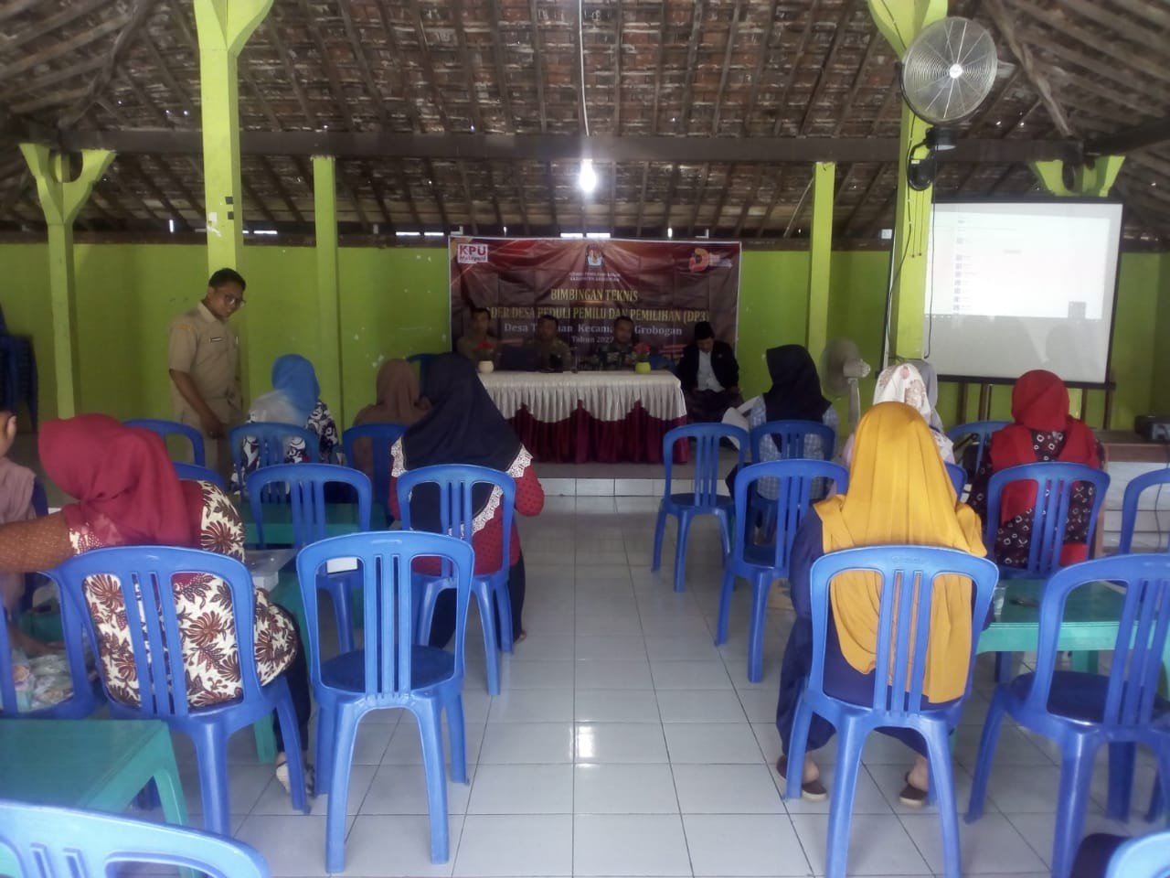 GROBOGAN - Selasa, 6 September 2022, Dalam rangka meningkatkan kualitas dan kuantitas partisipasi pemilih untuk sukses penyelenggaraan Pemilu dan Pemilihan 2024 serta membangun kesadaran politik masyarakat agar menjadi pemilih yang berdaulat, Komisi Pemilihan Umum Kabupaten Grobogan menyelenggarakan Bimbingan Teknis (Bimtek) untuk Kader Desa Peduli Pemilu dan Pemilihan (DP3) di Desa Teguhan Kecamatan Penawangan.