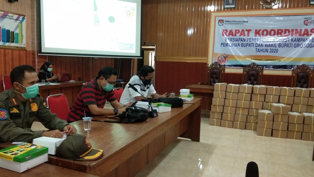 GROBOGAN – Sesuai dengan ketentuan yakni PKPU Nomor 11 perubahan PKPU Nomor 4 Tahun 2020 pada pasal 31 tentang kampanye, KPU Grobogan melaksanakan koordinasi dengan pihak terkait yakni Bawaslu, Satpol PP, dan Polres Grobogan untuk melaksanakan penertiban APK menjelang masa tenang. Hal itu disebutkan dalam rapat koordinasi persiapan penertiban atribut kampanye pemilihan bupati dan wakil bupati Grobogan tahun 2020 dilaksanakan di Aula KPU Grobogan, Sabtu (5/12/2020).
