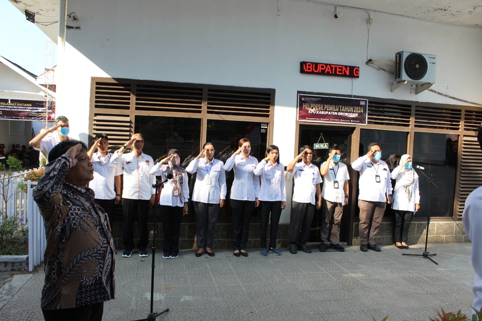 Bertindak sebagai komandan upacara adalah kasubbag Teknis Penyelenggaraan Pemilu, Partisipasi dan Hubungan Masyarakat Sekretariat KPU Kabupaten Groobgan Heri Prasetiyo, S. Sos. Sementara mengambil tempat sebagai Inspektur Upacara adalah Ketua KPU Kabupaten Grobogan Agung Sutopo, S. Pi. Hadir pada Upacara Peringatan Hari Kebangkitan Nasional Ke 115 ini adalah seluruh Anggota, Sekretaris, Kasubbag dan Staf KPU Kabupaten Grobogan.