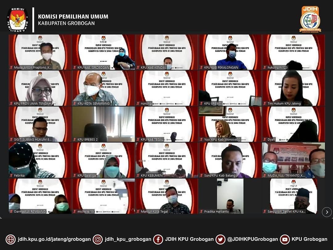 Hari ini KPU Kabupaten Grobogan ikuti Rapat Koordinasi Pengelolaan Jaringan Dokumentasi Dan Informasi Hukum (JDIH) yang diselenggarakan olek KPU Provinsi Jawa Tengah lewat zoom meeting.