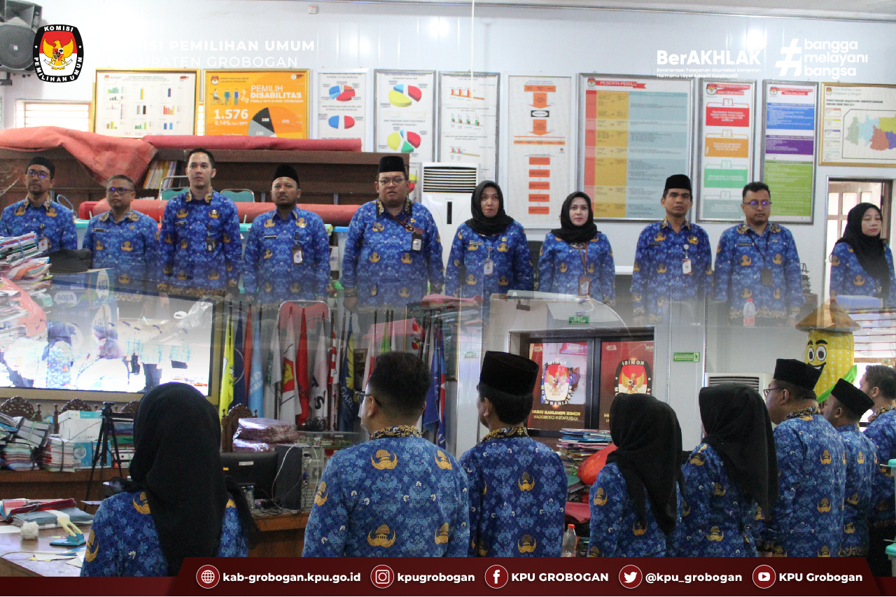 Kegiatan yang bertempat di Aula Kantor KPU Kabupaten Grobogan ini diikuti oleh Sekretaris, Kasubbag dan Staf ASN di lingkungan Sekretariat KPU Kabupaten Grobogan.