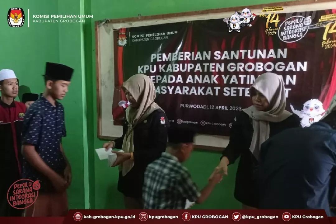 Hadir pada kesempatan tersebut adalah Sekretaris dan jajaran sekretariat KPU Kabupaten Grobogan.Yudhaviska berharap sedikit santunan ini dapat membantu anak-anak yatim yang berada di Panti Asuhan Darul Hadlonah. Sementara pengasuh Panti Asuhan Darul Hadlonah menyambut baik kegiatan ini, beliau pun turut mendoakan agar Pemilu 2024 yang tahapannya saat ini sedang berjalan, dapat dilaksanakan dengan lancar.