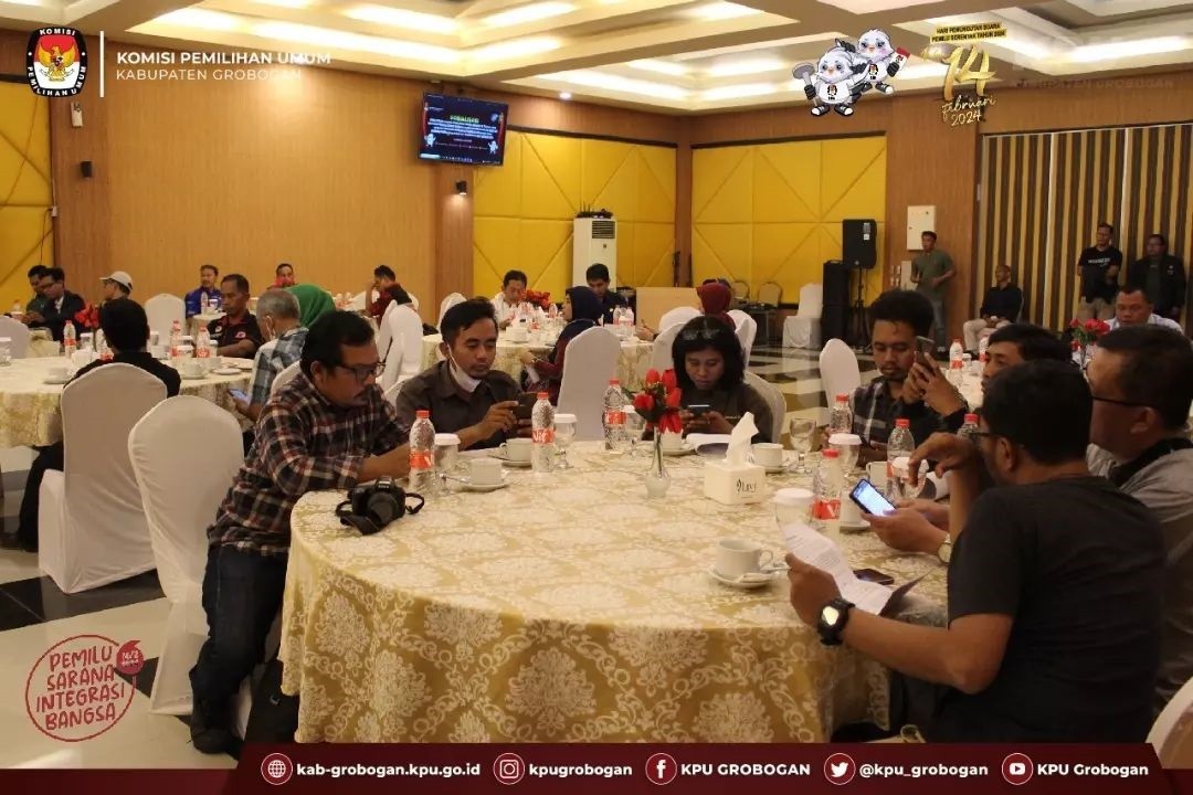 PURWODADI - Selasa, 2 Mei 2023 KPU Kabupaten Grobogan menggelar Sosialisasi Peraturan Komisi Pemilihan Umum Nomor 10 Tahun 2023 tentang Pencalonan Anggota Dewan Perwakilan Rakyat, Dewan Perwakilan Rakyat Daerah Provinsi Dan Dewan Perwakilan Rakyat Daerah Kabupaten/Kota bertempat di Hotel 21 Purwodadi, Jl. MT Haryono No. 137 Purwodadi.