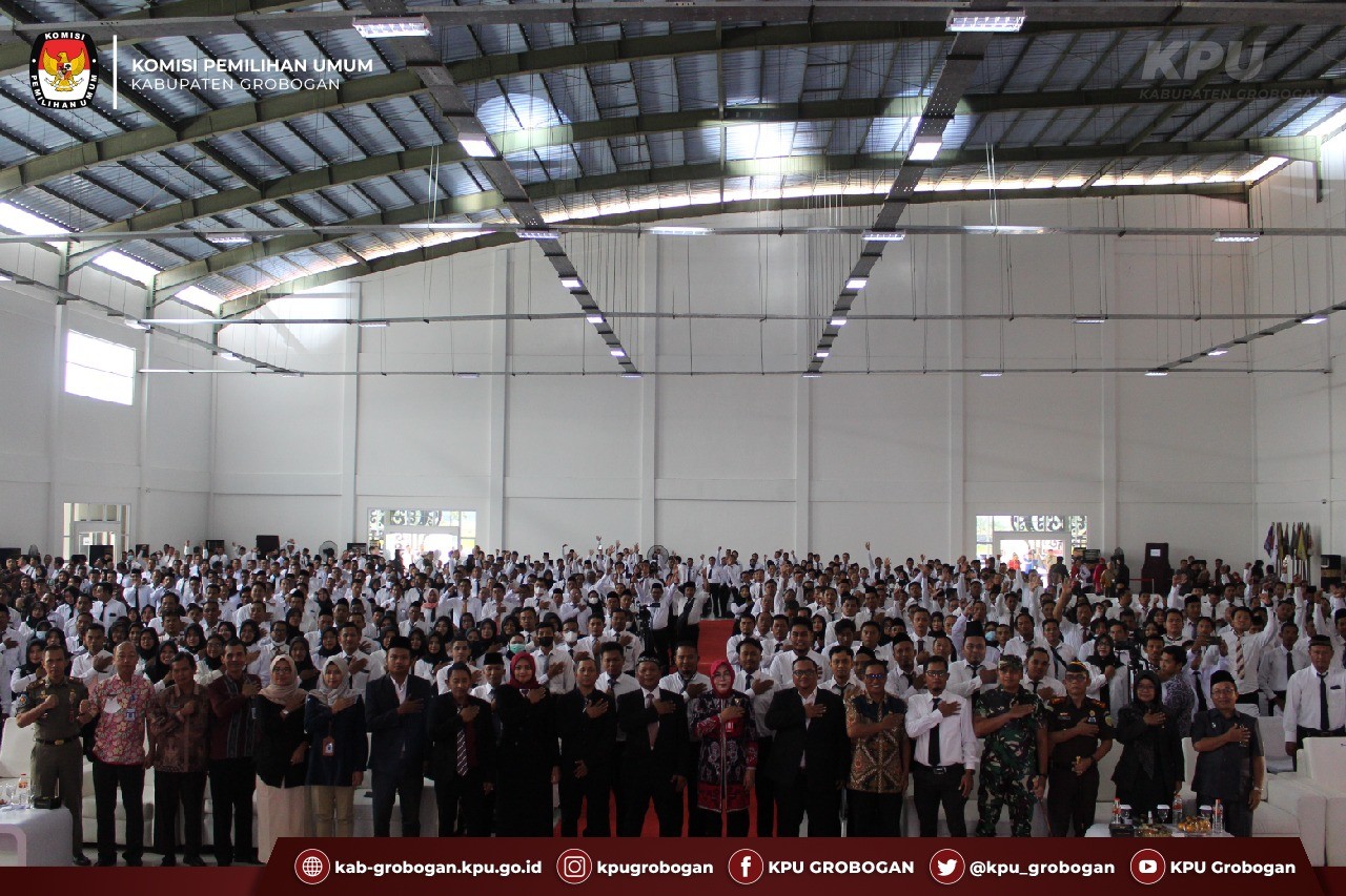 PURWODADI - Hari ini Selasa 24 Januari 2024, bertempat di Gedung Serba Guna Dewi Sri, KPU Kabupaten Grobogan berkesempatan menggelar Pelantikan Anggota Panitia Pemungutan suara (PPS) se-Kabupaten Grobogan Dalam Pemilihan Umum Tahun 2024. Hadir pada acara ini adalah Anggota KPU Provinsi Jawa Tengah, Bupati Grobogan beserta jajaran Forkopimda Kabupaten Grobogan, juga Kepala Desa dan Kelurahan se Kabupaten Grobogan.