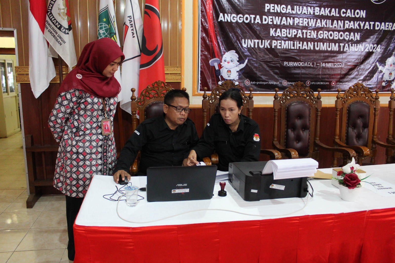 PURWODADI - Rabu, 10 Mei 2023 pukul 14.55 WIB, Partai UMMAT datang ke kantor KPU Kabupaten Grobogan dengan membawa berkas pengajuan bakal calon Anggota DPRD Kabupaten yang sebelumnya telah diunggah di Sistem Informasi Pencalonan (SILON). Hadir pada saat itu adalah Ketua Partai UMMAT tingkat Kabupaten Grobogan Bapak Narto dan Petugas penghubung (LO) Partai UMMAT tingkat Kabupaten Grobogan Bapak Mukhayatin.