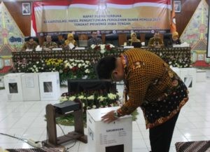 Pembacaan formulir DB1 sebagai hasil dari pleno tingkat kabupaten dibacakan secara bergantian oleh Komisioner KPU Kabupaten Grobogan dengan cermat dan teliti untuk kemudian dicatat dalam formulir DC1 di tingkat Provinsi.
