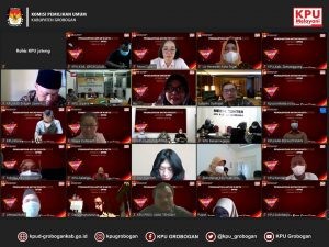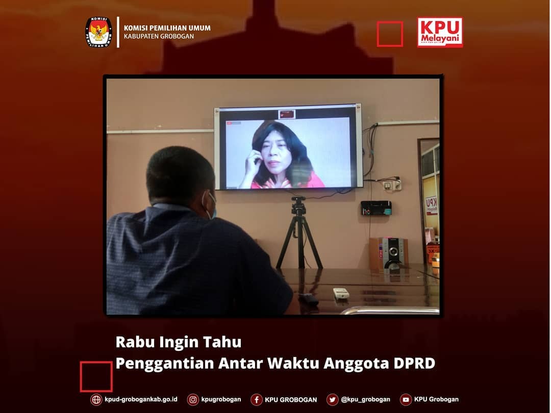 KPU Kabupaten Grobogan menjadi salah satu peserta pada program Rabu Ingin Tau(RIT) Episode 17 yang diselenggarakan secara daring oleh KPU Provinsi Jawa Tengah. Diskusi online yang diikuti oleh KPU Kabupaten/ Kota se Jawa Tengah melalui Zoom Meeting dan live streaming di channel Youtube KPU Jateng ini menghadirkan narasumber dari KPU RI yaitu Nur Syarifah selaku Kepala Biro Perundang-Undangan dan Plt. Kepala Biro Teknis Penyelenggaraan Pemilu Sekjen KPU.