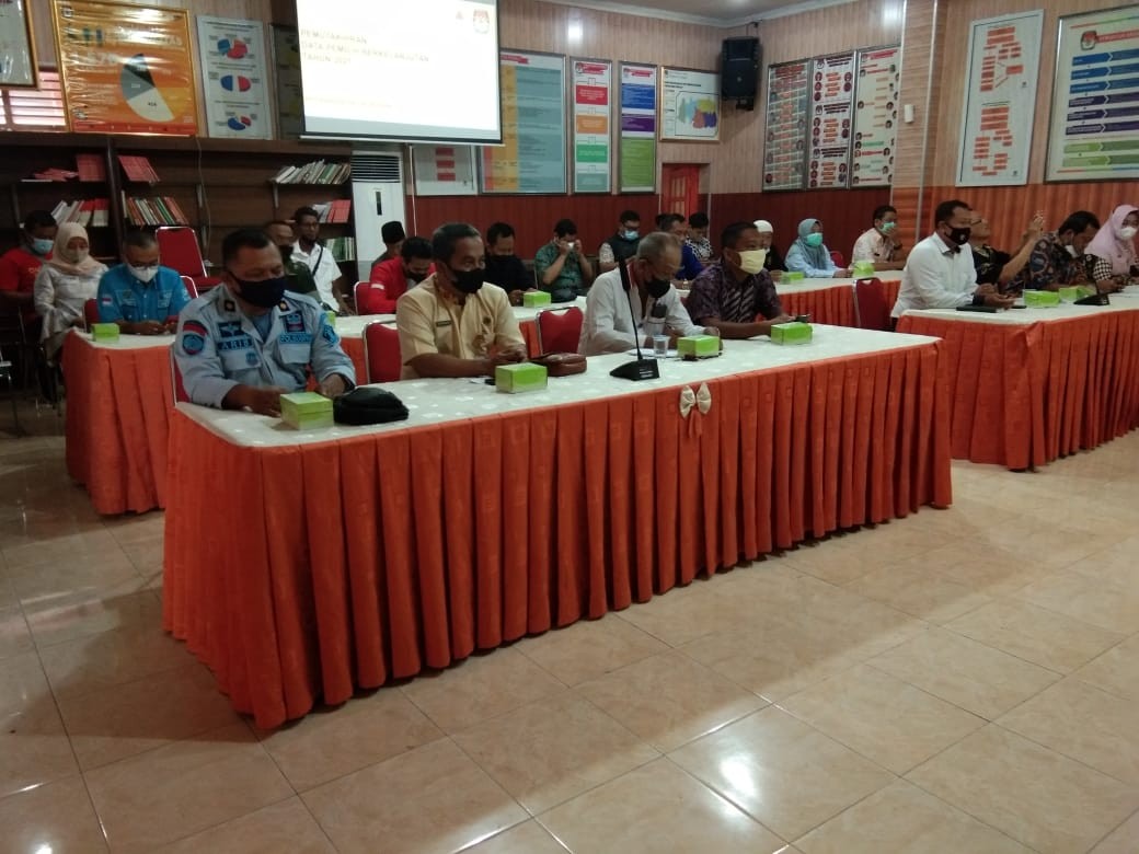 Rakor Pemutakhiran Data Pemilih Berkelanjutan Perode Desember Tahun 2021 ini diawali dengan sambutan Ketua KPU Kabupaten Grobogan dilanjutkan dengan pemaparan materi PDPB oleh Bapak Muhammad machruz, ST dan diakhiri dengan sesi diskusi dan tanya jawab. Pada sambutannya, Agung Sutopo, S. Pi berterimakasih kepada tamu undangan yang hadir atas kehadirannnya dan juga atas bantuannya selama setahun terakhir ini dalam penyusunan Data Pemilih Berkelanjutan di tahun 2021 ini.