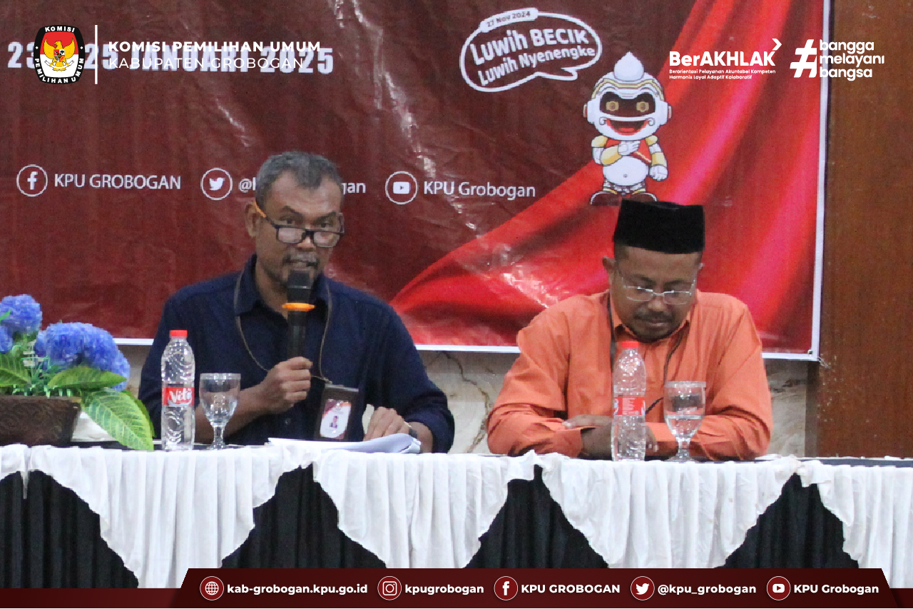 Hai #temanpemilih, dalam rangka tertib administrasi serta pelaporan keuangan untuk Badan Ad Hoc, KPU Kabupaten Grobogan gelar Rapat Kerja Penyelesaian Aplikasi Sistem Informasi Pertanggungjawaban Anggaran Badan Ad Hoc (Sitab) Pemilihan Gubernur dan Wakil Gubernur Jawa Tengah dan Pemilihan Bupati dan Wakil Bupati Grobogan Tahun 2024, Kamis (23/1/2025).