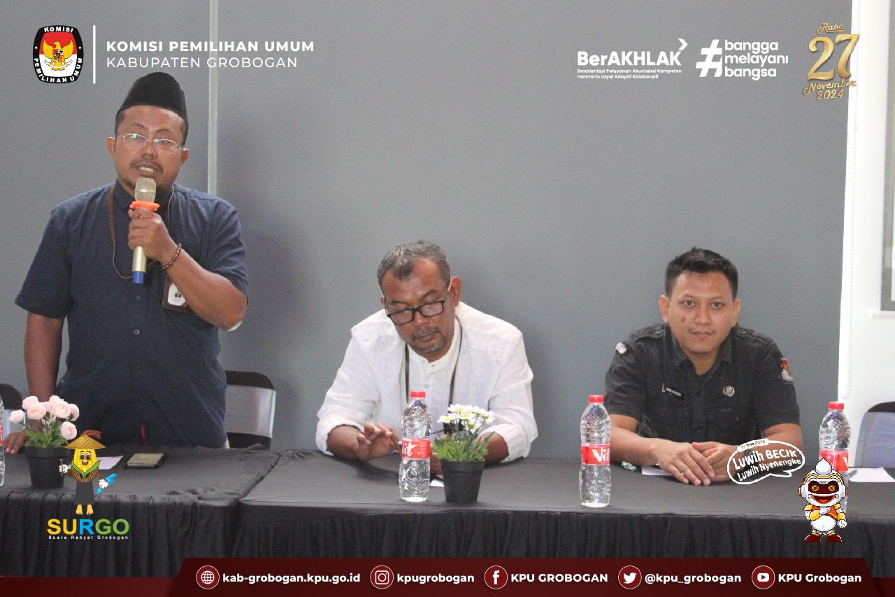 Hai #temanpemilih, KPU Kabupaten Grobogan gelar Rapat Koordinasi Penatausahaan dan Pertanggungjawaban Keuangan Badan Adhoc Penyelenggara Pemilihan Gubernur dan Wakil Gubernur Jawa Tengah Serta Pemilihan Bupati dan Wakil Bupati Grobogan Tahun 2024, Rabu (11/12/2024).