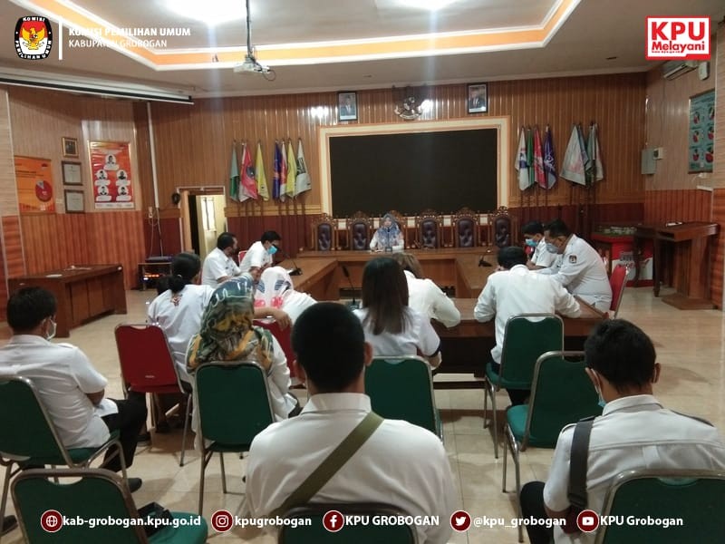 Dipimpin oleh Sekretaris KPU Kabupaten Grobogan, Yudhaviska AS, rapat rutin ini berjalan lancar. Tujuan dari dilaksanakannya rapat rutin ini adalah untuk menyampaikan hal-hal yang telah dilaksanakan pada minggu yang lalu dan yang akan dilaksanakan di mingu yang akan datang. Masing-masing sub bagian melaporkan pekerjaannya dengan rinci, dimulai oleh Kasubag KUL, Kasubag Prodat, Kasubag Teknis serta Kasubag Hukum Dan Pengawasan.