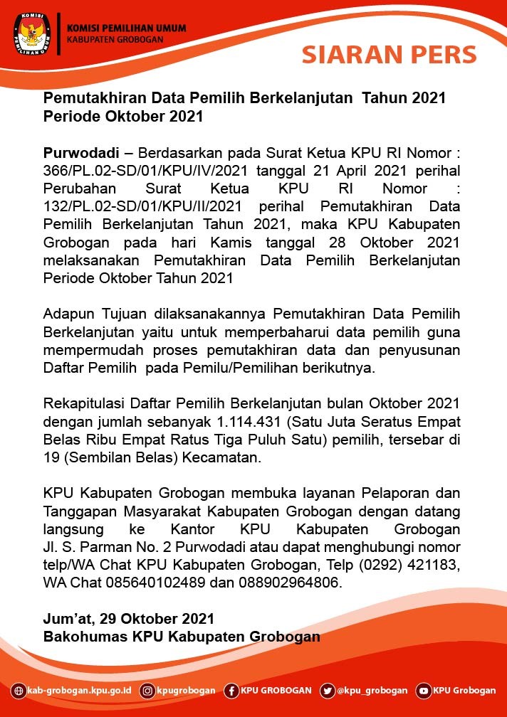 Siaran Pers KPU Kabupaten Grobogan