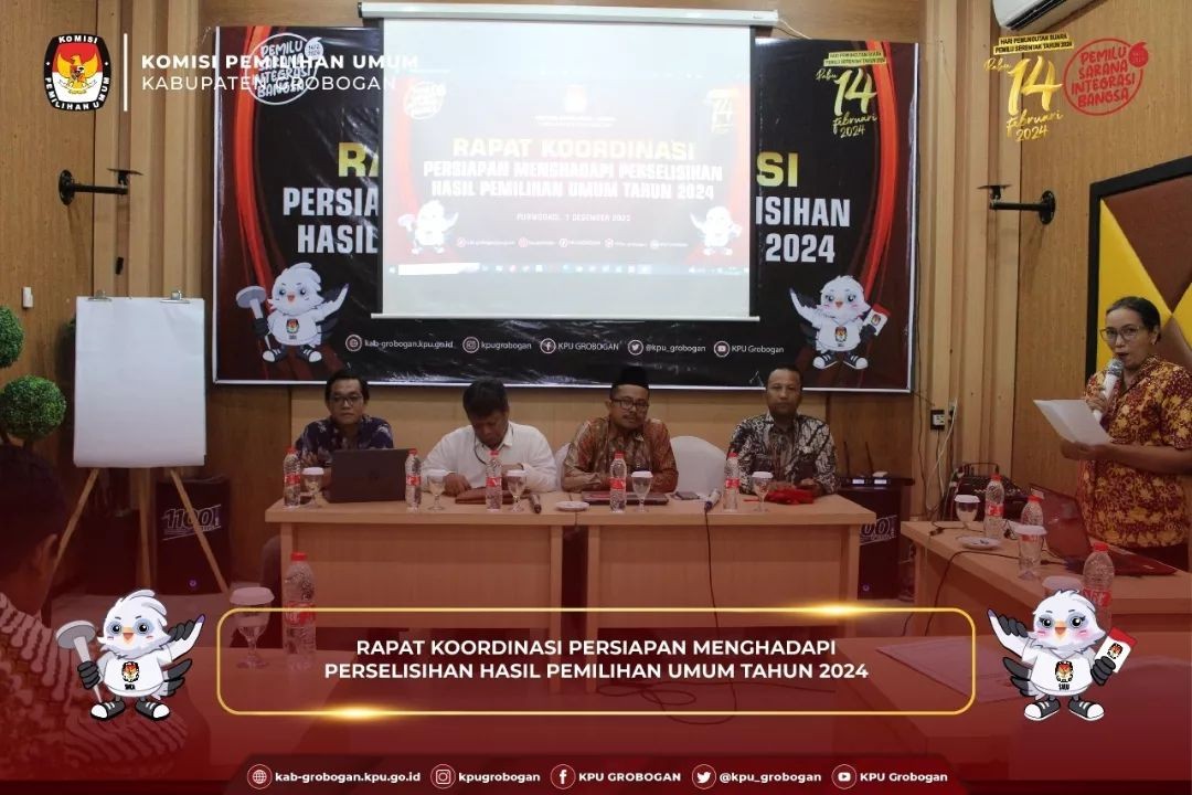 PURWODADI - Senin (4/12/2023), KPU Kabupaten Grobogan mengadakan Bimbingan Teknis Pengamanan Siber dan Pengelolaan Media Sosial Bagi PPK se-Kabupaten Grobogan pada Pemilihan Umum Tahun 2024 dengan narasumber Bapak Dwi Setiawan, M.Kom dari Universitas Sains dan Teknologi Komputer Semarang, dan Ibu Sindhu Rakasiwi, M.Kom dari Universitas Dian Nuswantoro Semarang.