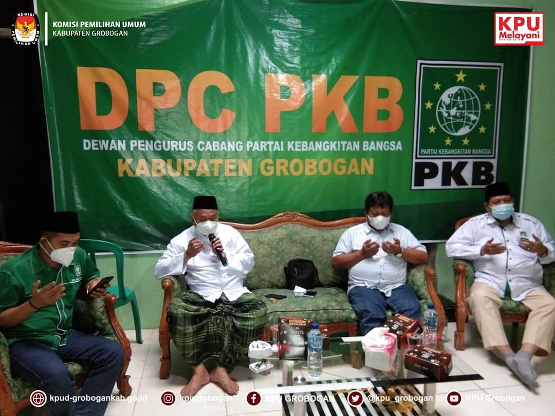 Ketua DPC PKB Grobogan beserta jajaran pengurus memberikan sambutan baik atas kunjungan silaturahmi yang dilakukan oleh KPU Kab. Grobogan dalam bentuk kegiatan “Samsu Kamisan” ini, serta memberikan apresiasi terhadap kinerja KPU Kab. Grobogan bahwa slogan bukan hanya slogan semata, akan tetapi benar-benar terlaksana dengan baik.
