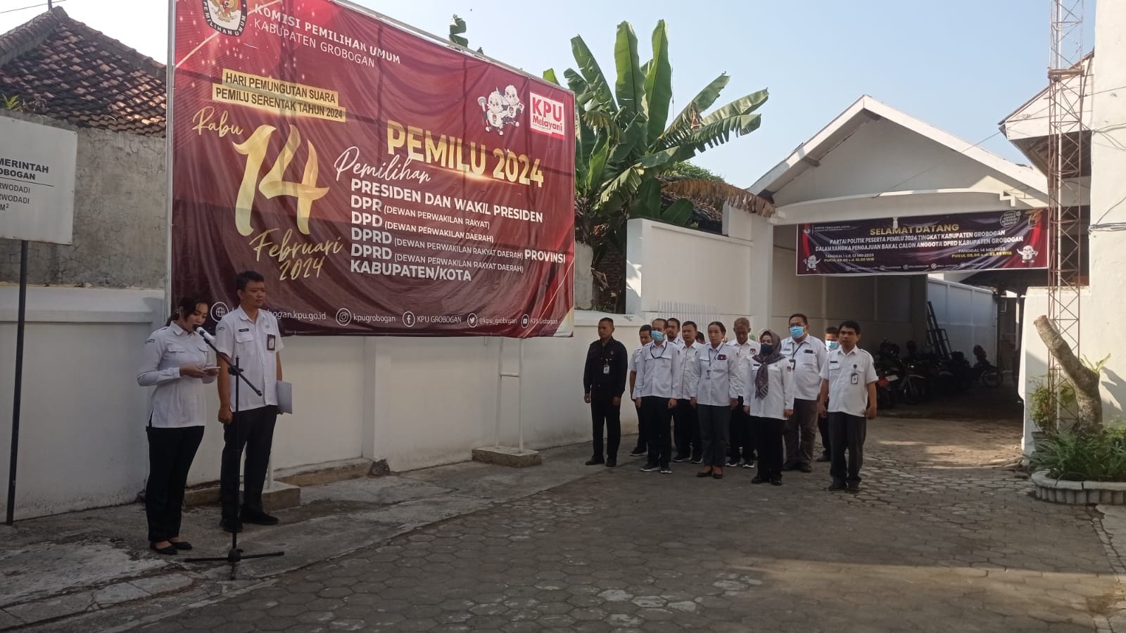 PURWODADI - Senin, 29 Mei 2023, KPU Kabupaten Grobogan melaksanakan apel pagi. Seperti waktu-waktu sebelumnya, apel pagi dilaksanakan pada hari Senin tepat pukul 08.00 WIB. Bertugas sebagai Pemimpin Apel adalah Kasubbag Teknis Penyelenggaran Pemilu, Partisipasi dan Hubungan Masyarakat Sekretariat KPU Kabupaten Grobogan Bapak Heri Prasetiyo, S. Sos. Sementara yang mengambil tempat sebagai Pembina Apel adalah Anggota KPU Kabupaten Grobogan Divisi Hukum dan Pengawasan Ibu Sulistiyorini, SP.