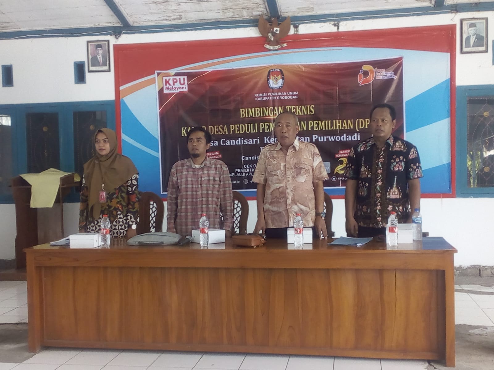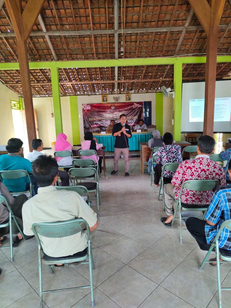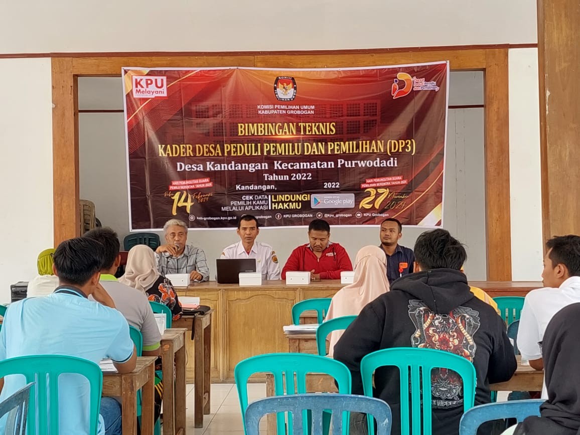 PURWODADI - Rabu, 7 September 2022, Dalam rangka meningkatkan kualitas dan kuantitas partisipasi pemilih untuk sukses penyelenggaraan Pemilu dan Pemilihan 2024 serta membangun kesadaran politik masyarakat agar menjadi pemilih yang berdaulat, Komisi Pemilihan Umum Kabupaten Grobogan menyelenggarakan Bimbingan Teknis (Bimtek) untuk Kader Desa Peduli Pemilu dan Pemilihan (DP3) di Desa Kandangan Kecamatan Purwodadi. Hadir dalam Bimtek ini 25 kader Desa Peduli Pemilu dan Pemilihan (DP3) dari masing-masing basis. Pemateri pertama adalah Anggota Komisi Pemilihan Umum Kabupaten Grobogan Divisi Teknis Penyelenggaraan Suwiknyo, S. Pd. I dengan materi Desa Peduli Pemilu dan Pemilihan (DP3) serta Sistem dan Tahapan Pemilu dan Pemilihan. Kemudian dilanjutkan oleh pemateri kedua yaitu dari Bakesbangpol Kabupaten Grobogan Muflih Yusuf dengan materi yaitu Pendidikan Politik Dalam Pencegahan Politik Uang. Materi terakhir disampaikan oleh Perwakilan SPI Kabupaten Grobogan Rubadi yaitu Teknik dan Identifikasi Berita Bohong (Hoaks). Karena materi-materi yang disampaikan oleh narasumber menarik bagi Kader DP3, maka suasanapun menjadi lebih hangat. Dengan penyampaian yang sederhana, membuat Kader DP3 Desa Kandangan Kecamatan Purwodadi tertarik untuk menyimak materi yang disampaikan oleh narasumber. Banyak pertanyaan yang dilontarkan oleh kader DP3 Desa Kandangan Kecamatan Purwodadi, antara lain bagaimana cara menghindari politik uang. Pertanyaan-pertanyaan ini dijawab dengan apik oleh narasumber. Ngatiman berharap dengan Bimtek Kader DP3 Desa Kandangan Kecamatan Purwodadi dapat meningkatkan partisipasi pemilih di Desa Kandangan khususnya, dan masyarakat Grobogan pada umumnya. Sementara Muflih berharap Bimtek Kader DP3 Desa Kandangan Kecamatan Purwodadi ini mampu meminimalisir terjadinya praktek politik uang. By : MM