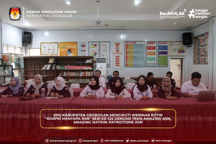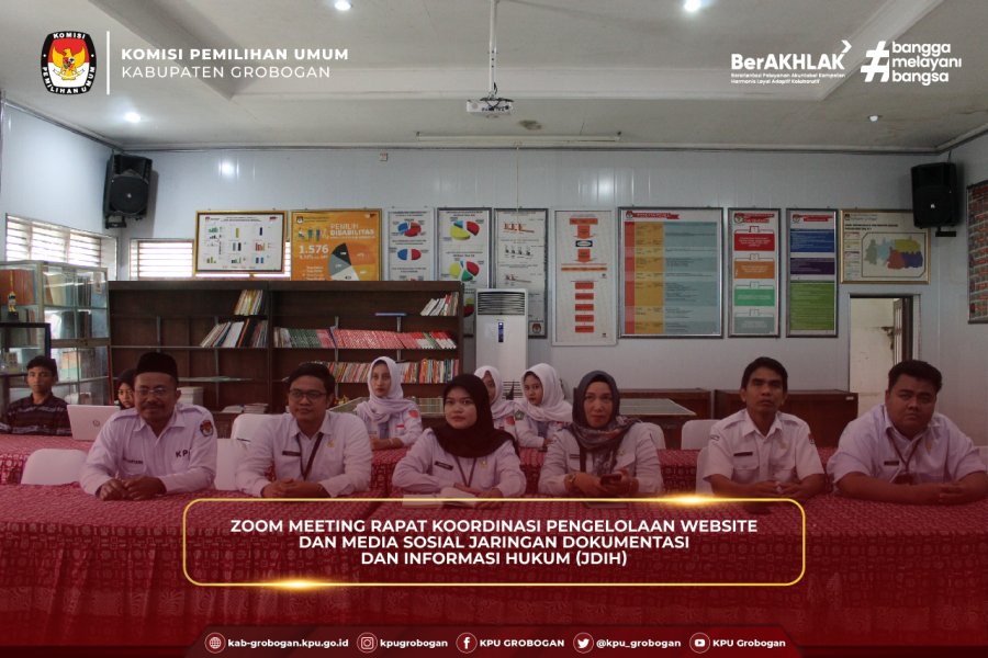 #TemanPemilih, bertempat di Aula, KPU Kabupaten Grobogan mengikuti Rapat Koordinasi Pengelolaan Website dan Media Sosial Jaringan Dokumentasi dan Informasi Hukum (JDIH) yang diselenggarakan oleh KPU Provinsi Jawa Tengah, Senin (11/8/2025). Kegiatan yang dilaksanakan secara daring ini dihadiri oleh Kadiv Hukum dan Pengawasan dan Kasubbag Teknis Penyelenggaraan Pemilu dan Hukum beserta Staf KPU Kabupaten/Kota se-Jawa Tengah. Kegiatan dibuka langsung oleh Ketua KPU Provinsi Jawa Tengah, Handi Tri Ujiono. Dalam sambutannya, Handi Tri Ujiono menyampaikan apresiasi atas peningkatan kualitas pembaruan (updating) informasi di website KPU Kabupaten/Kota dibandingkan tahun-tahun sebelumnya. Ia menekankan pentingnya publikasi cepat terhadap produk hukum dan informasi penyelenggaraan pemilu agar masyarakat dapat segera mengaksesnya. Selain itu, Ia juga mengulas pengelolaan media sosial, termasuk pencapaian luar biasa pada salah satu tayangan “Kamis Sesuatu” episode 12 di kanal Youtube KPU Provinsi Jawa Tengah yang mencapai lebih dari 5.600 penonton, lebih besar dibandingkan jumlah subscriber. Hal ini dinilai sebagai peluang untuk mengembangkan strategi konten yang lebih menarik dan sesuai kebutuhan publik. Kadiv Hukum dan Pengawasan KPU Provinsi Jawa Tengah, Muslim Aisha menambahkan bahwa pengelolaan media sosial bukan hanya soal teknis, namun juga kebijakan publikasi yang efektif. Ia mendorong setiap satuan kerja untuk tidak hanya aktif memperbarui konten, tetapi juga memastikan daya tarik informasi yang disampaikan, sehingga mampu menjangkau dan dipahami masyarakat luas. Kegiatan ini juga diisi pemaparan dari Pengelola JDIH KPU RI, Muhammad Fakhri Ali Ibrahim terkait standar teknis pengelolaan website, Jaringan Dokumentasi dan Informasi Hukum. Harapannya, koordinasi ini dapat memperkuat peran media digital KPU sebagai etalase informasi yang produktif, transparan, dan mendukung tata kelola penyelenggaraan pemilu yang baik.