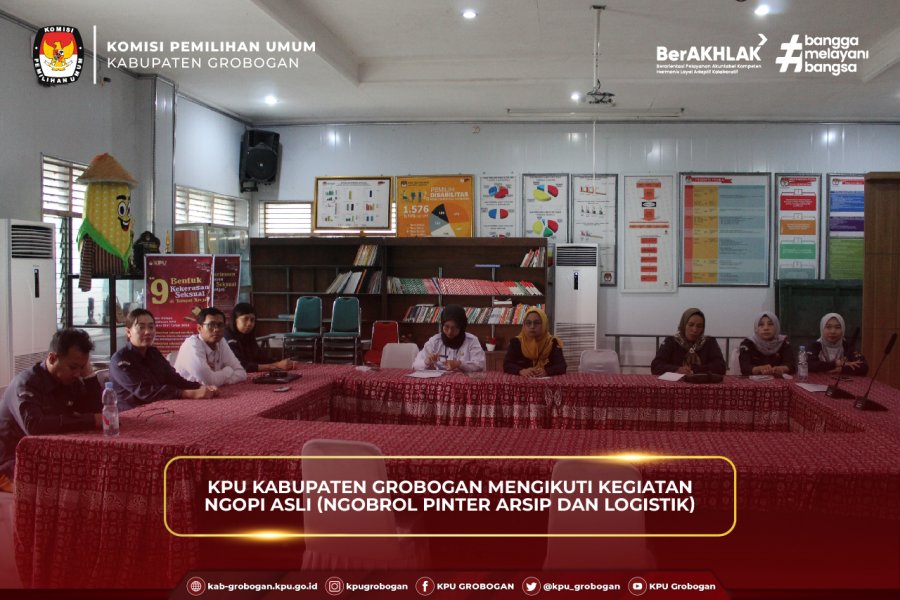 Hai #TemanPemilh, bertempat di aula, KPU Kabupaten Grobogan berpartisipasi dalam acara daring yang diadakan oleh KPU Provinsi Jawa Tengah, yaitu Ngopi Asli (Ngobrol Pinter Arsip dan Logistik), Selasa (18/11/2025). Pertemuan yang diikuti oleh seluruh KPU Kabupaten/Kota se-Jawa Tengah ini mengangkat topik "Man-to-Man Marking: Strategi Efisiensi Distribusi Logistik." Diskusi utama kali ini membahas strategi perbaikan sistem, efisiensi penyaluran, dan pengelolaan arsip logistik Pemilu, dengan menghadirkan tiga narasumber yang berbagi tantangan dan solusi di wilayah mereka masing-masing. Handi Tri Ujiono, Ketua KPU Provinsi Jawa Tengah, membuka diskusi dengan menyampaikan bahwa logistik Pemilu harus mengambil pelajaran dari sejarah untuk memastikan layanan tanpa hambatan, seperti mitigasi jalur distribusi yang aman. Ia memberikan apresiasi atas perencanaan berbasis data yang diterapkan KPU Kabupaten/Kota untuk efisiensi distribusi. Handi menekankan pentingnya manajemen arsip yang terdigitalisasi, termasuk dokumen pencalonan, sebagai persiapan krusial dalam menghadapi sengketa informasi di persidangan. Selanjutnya, Basmar Perianto Amron, Kadiv Perencanaan dan Logistik KPU Provinsi Jawa Tengah, dalam sambutannya memaparkan mengacu pada block grant dari distribusi logistik, tiap daerah harus memiliki strategi agar tercipta efisiensi dalam distribusi logistik. Demi terlaksananya hal tersebut, ia menegaskan perlunya inisiasi untuk memperhitungkan segalanya. Misbachul Munir, Ketua KPU Kota Magelang memaparkan strategi efisiensi yang telah mereka terapkan dalam pendistribusian logistik. Sementara itu Yesaya Tiluata, Ketua KPU Salatiga menyoroti keberhasilan mereka dalam efisiensi anggaran Pilkada, di mana mereka berhasil mencapai penghematan dan dana tersebut dikembalikan kepada Pemerintah Kota. KPU Salatiga menggunakan dua gudang logistik dan berkolaborasi ketat dengan Forkopimda dalam pengadaan dan pengawasan. Proses distribusi melibatkan PT Pos dengan pengawalan polisi, dan yang terpenting, ia memastikan pemusnahan surat suara yang dilakukan dengan cara dibakar selalu disaksikan oleh Bawaslu serta dicatat dalam berita acara. Terakhir, Karyudi Prayitno, Ketua KPU Tegal menegaskan fokus utama dalam distribusi logistik adalah kecepatan dan ketepatan pengiriman, yang dicapai melalui pemanfaatan digitalisasi dan otomasi serta analisis data historis untuk meminimalisir risiko kemacetan. Melalui kegiatan Ngopi Asli ini, diharapkan kita dapat memahami pentingnya efisiensi distribusi logistik memerlukan perencanaan terukur, koordinasi lintas sektor dan inovasi teknologi. Tantangan geografis dan waktu harus diantisipasi melalui sistem distribusi yang adaptif dan terintegrasi. Tidak hanya itu, kolaborasi antara KPU, pemerintah daerah, aparat keamanan dan masyarakat merupakan kunci keberhasilan distribusi logistik yang tepat waktu dan akuntabel.