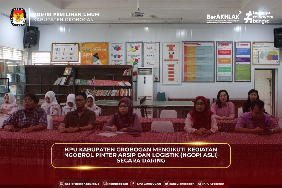 KPU Kabupaten Grobogan mengikuti kegiatan Ngopi Asli (Ngobrol Pinter Arsip dan Logistik) yang diselenggarakan oleh KPU Provinsi Jawa Tengah secara daring pada Selasa (23/9/2025). Kegiatan yang diikuti oleh seluruh KPU Kabupaten/Kota se-Jawa Tengah ini mengangkat tema “Umpan Terukur: Alih Media Arsip dari Manual ke Digital Tanpa Kendala”.