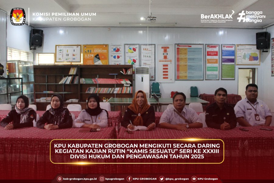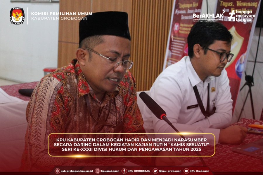 Hai #TemanPemilih, KPU Kabupaten Grobogan mengikuti secara daring kegiatan Kajian Rutin “Kamis Sesuatu” Seri ke XXXIII Divisi Hukum dan Pengawasan Tahun 2025 di Aula Kantor KPU Grobogan, Rabu (24/12/2025). Kegiatan yang diselenggarakan oleh KPU Provinsi Jawa Tengah ini mengangkat tema Putusan Perkara Nomor 100/PHPU.BUP-XXIII/2025 Bupati dan Wakil Bupati Belu Tahun 2024 dan diikuti oleh seluruh KPU Kabupaten/Kota se-Jawa Tengah. Hadir sebagai narasumber Petrus Kanisius Nahak Kadiv Hukum dan Pengawasan KPU Provinsi Nusa Tenggara Timur, Gregorius Mali Lau Kadiv Hukum dan Pegawasan KPU Kabupaten Belu, serta Siti Solichah Kadiv Hukum dan Pengawasan KPU Kabupaten Semarang. Kadiv Data dan Informasi KPU Provinsi Jawa Tengah, Paulus Widiyantoro, dalam pengantarnya menyampaikan bahwa kajian ini menjadi forum pembelajaran penting bagi jajaran KPU dalam memahami dinamika hukum Pilkada. Ia menyoroti bahwa dalam perkara Kabupaten Belu, pemohon mendalilkan calon Wakil Bupati berstatus tidak memenuhi syarat (TMS) karena pernah dijatuhi pidana penjara. Namun demikian, Mahkamah Konstitusi menolak permohonan tersebut karena KPU Kabupaten Belu dinilai mampu memberikan jawaban strategis dan meyakinkan. Para narasumber menjelaskan bahwa perkara tersebut diajukan oleh Pasangan Calon Nomor Urut 2, dr. Taolin Agustinus, Sp.PD dan Yulianus Tai Bere, sebagai Pemohon terhadap KPU Kabupaten Belu Provinsi Nusa Tenggara Timur sebagai Termohon. Pemohon mendalilkan Calon Wakil Bupati Nomor Urut 1, Vicente Hornai Gonsalves tidak memenuhi syarat pencalonan. Mahkamah Konstitusi dalam pertimbangannya menegaskan bahwa Calon Wakil Bupati Nomor Urut 1 telah memenuhi ketentuan hukum, termasuk masa jeda lima tahun sebagai mantan terpidana, serta tidak ditemukan pelanggaran kejujuran dalam tahapan pencalonan. Seluruh proses pemilihan dinyatakan telah dilaksanakan sesuai peraturan perundang-undangan. Berdasarkan hal tersebut, Mahkamah Konstitusi memutuskan mengabulkan eksepsi Termohon dan menyatakan permohonan Pemohon tidak dapat diterima. Sementara itu, Kadiv Hukum dan Pengawasan KPU Provinsi Jawa Tengah, Muslim Aisha menilai Putusan MK dalam PHPU Kabupaten Belu 2024 bersifat unik karena meskipun selisih suara melampaui ambang batas, MK tetap memeriksa pokok perkara terkait syarat pencalonan. MK menyatakan dalil kekerasan seksual terhadap anak tidak terbukti dan berpandangan bahwa masa jeda lima tahun bagi mantan terpidana memiliki esensi yang sama dengan kewajiban pengumuman, sehingga kekurangan administrasi pencalonan tidak dijadikan dasar pembatalan, sebuah preseden penting yang perlu dicermati penyelenggara pemilu ke depan. Melalui kajian ini, diharapkan jajaran KPU semakin memperkuat pemahaman hukum serta kesiapan kelembagaan dalam menghadapi sengketa hasil pemilihan secara profesional dan berintegritas.