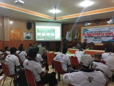 GROBOGAN - Menjelang pembentukan anggota Kelompok Penyelenggara Pemungutan Suara (KPPS), KPU Grobogan menggelar rapat koordinasi. Dalam rapat ini dihadiri ketua PPK se Kabupaten Grobogan, perwakilan Satpol PP Grobogan, Polres Grobogan, Bagian Tata Pemerintahan Setda Grobogan, Dinas Kesehatan Grobogan, dan Tim Satgas Covid-19 Grobogan.