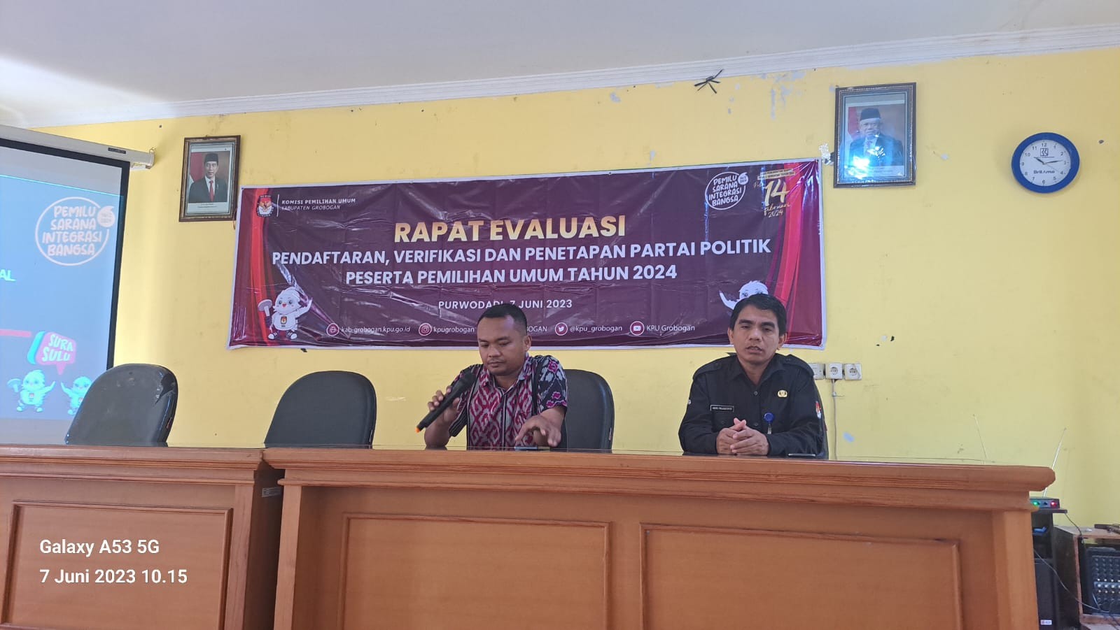 PURWODADI - Rabu, 7 Juni 2023 bertempat di Rumah Kedelai Grobogan (RKG) KPU Kabupaten Grobogan menyelenggarakan Rapat Evaluasi Pendaftaran, Verifikasi Dan Penetapan Partai Politik Peserta Pemilihan Umum Tahun 2024. Kegiatan tersebut dimulai tepat pukul 09.00 WIB, berkesempatan membuka acara tersebut adalah Anggota KPU Kabupaten Grobogna Divisi Teknis Penyelenggaraan Bapak Suwiknyo, S. Pd. I.